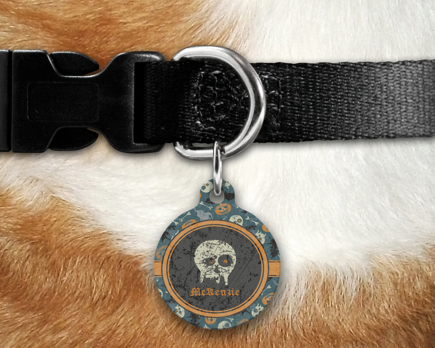 Go ahead; skip the monotony of plain pet ID tags with your very own, customized & personalized, round pet tag! This pet ID tag, fitting for both cats and dogs, will catch the eye of any onlooker (humans, canines, and felines, alike!) and accentuate your pet's individual personality.