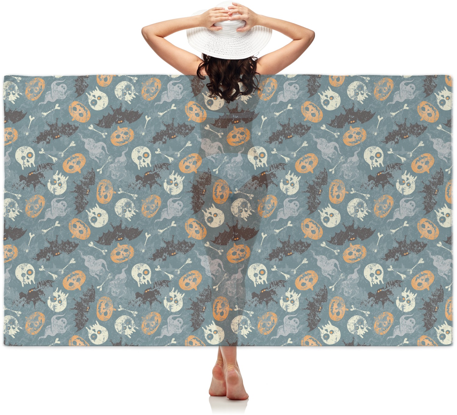 Halloween: the one day a year when it's totally normal to see human bones and skulls everywhere. This design brings together all your favorite (and usually quite terrifying) things from October 31st on a deep vintage blue background.
