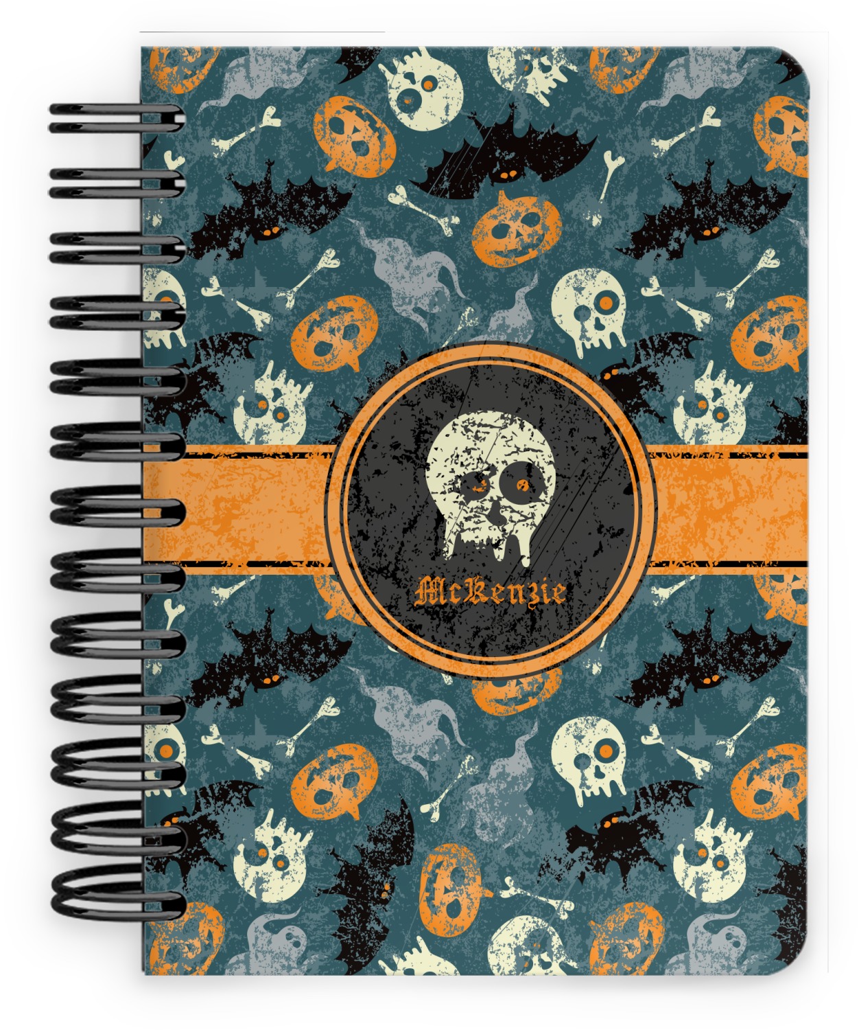 This spiral notebook includes 75 sheets of thick, ruled paper. The front and back of this custom notebook is made of a robust, laminate, plastic covering. We print your personalization on these two panels, underneath a glossy finish, which emphasizes the colors of your design. The two panels and the sheets of paper are held together by a sturdy, black coil. The paper within your bound notebook is perforated for easy, clean tearing.