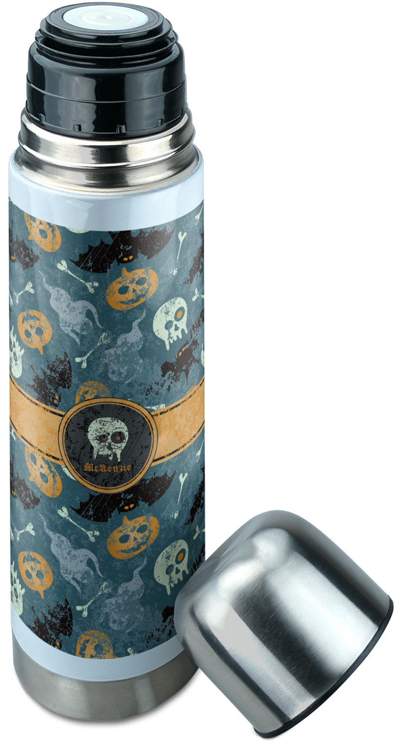 Manufactured from stainless steel, this thermos is built durably and double-walled insulated to preserve the temperature of your drink for hours. It also features a screw off lid that is made to also function as a small cup. Upon unscrewing this part of the thermos bottle, a pop-open, pour feature emerges. This feature allows you to slowly pour your beverage into your lid, ensuring a steady, controlled pour into your lid or other cup. With a capacity of 25 ounces, these large thermoses can hold several servings of your favorite beverage. Your customization is displayed all around the bottle with bright, vibrant color.