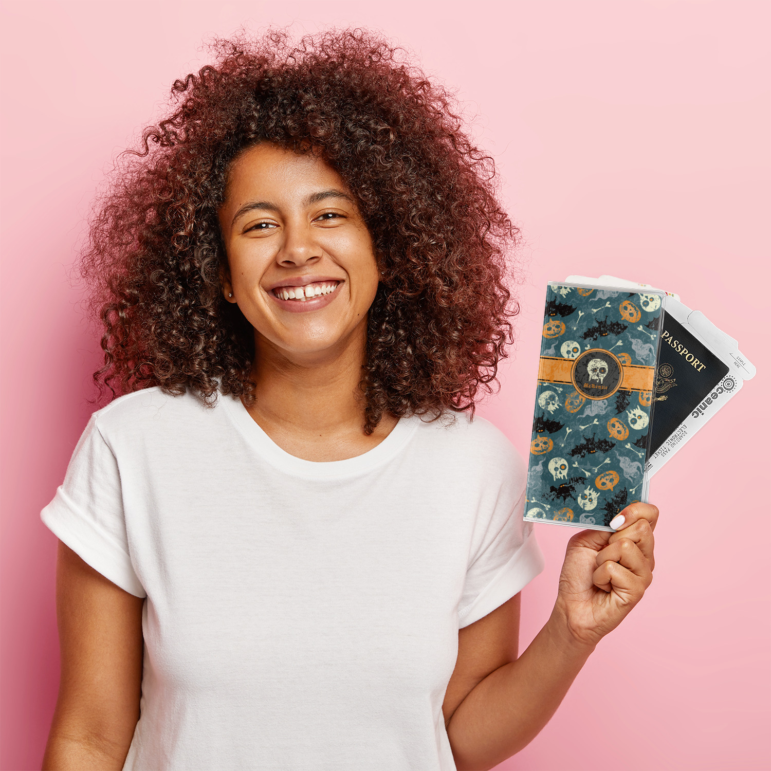 This document holder is really sturdy and has your personalized design inserted right behind all of your nifty pockets, so you can see it on the front and back covers. There are two large pockets and two shorter pockets inside. The larger pockets are tall enough to keep your boarding pass nice and straight. The smaller pockets (on top of the large pockets) are large enough to fit your passport, credit card, or ID.