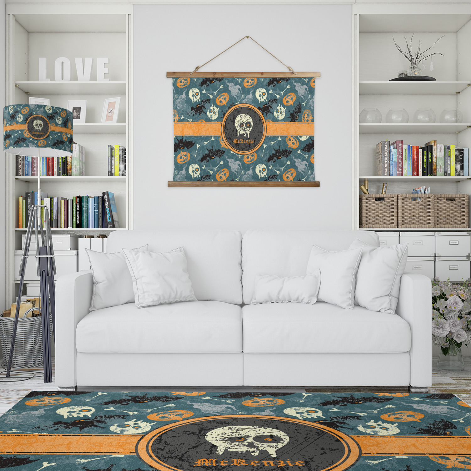 Halloween: the one day a year when it's totally normal to see human bones and skulls everywhere. This design brings together all your favorite (and usually quite terrifying) things from October 31st on a deep vintage blue background.