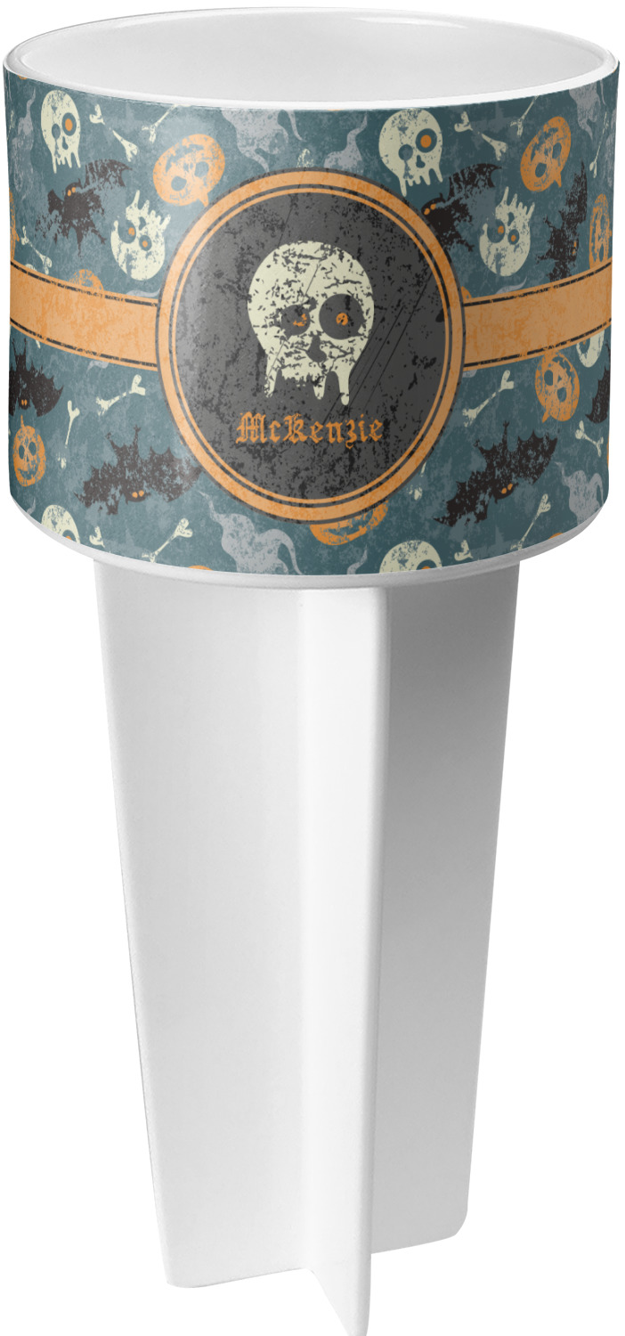 This cup holder has a large stake at its bottom that anchors it to the sand or ground below, while the cup holder rests above the stake. The entire drink holder is made of durable plastic and displays your customization around the cup holder portion. We sell these personalized beach spikers in two different colors: black and white.