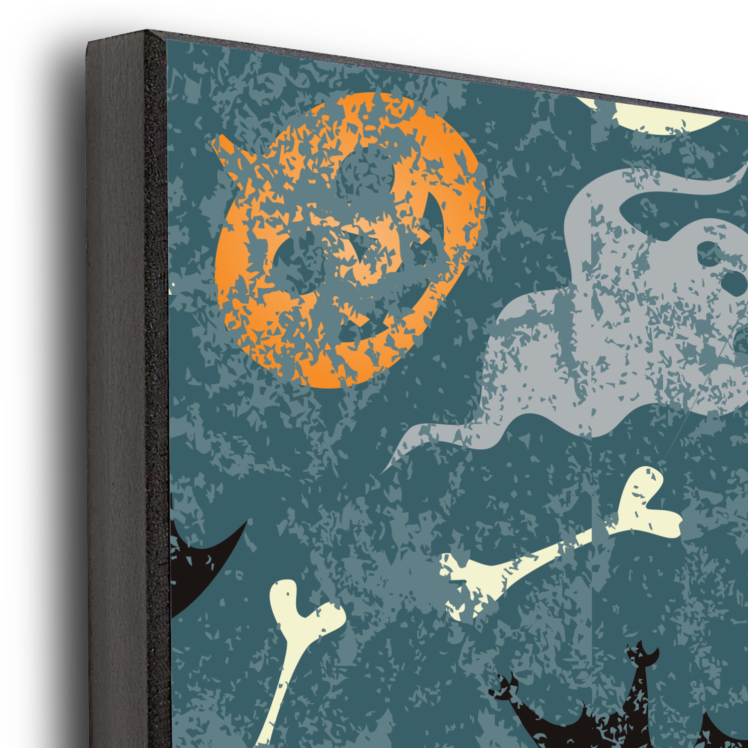 Halloween: the one day a year when it's totally normal to see human bones and skulls everywhere. This design brings together all your favorite (and usually quite terrifying) things from October 31st on a deep vintage blue background.