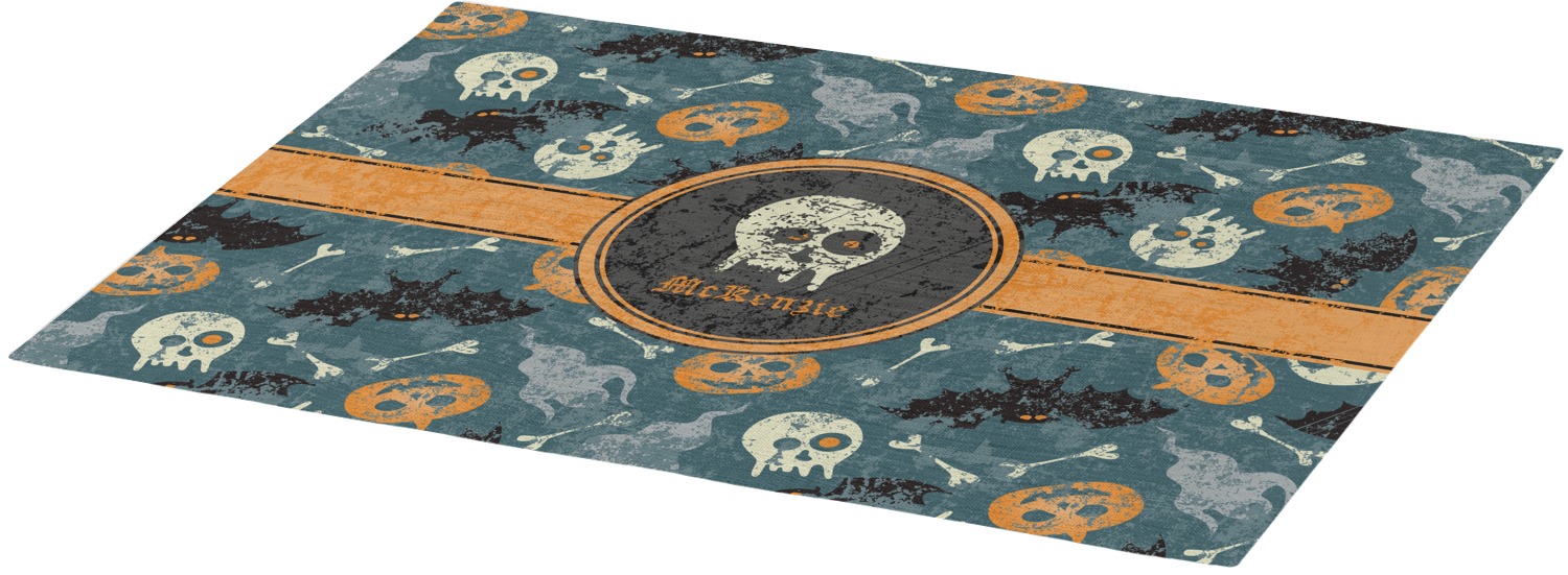 Each of our table mats are a poly twill material with woven burlap detailing. This creates a soft, quality placemat for us to fully print your personalized design across. The woven twill also adds a wrinkle-free surface to set your table! Each customizable placemat is a rectangle shape measuring at approximately 13 x 18 and printed here in the USA.