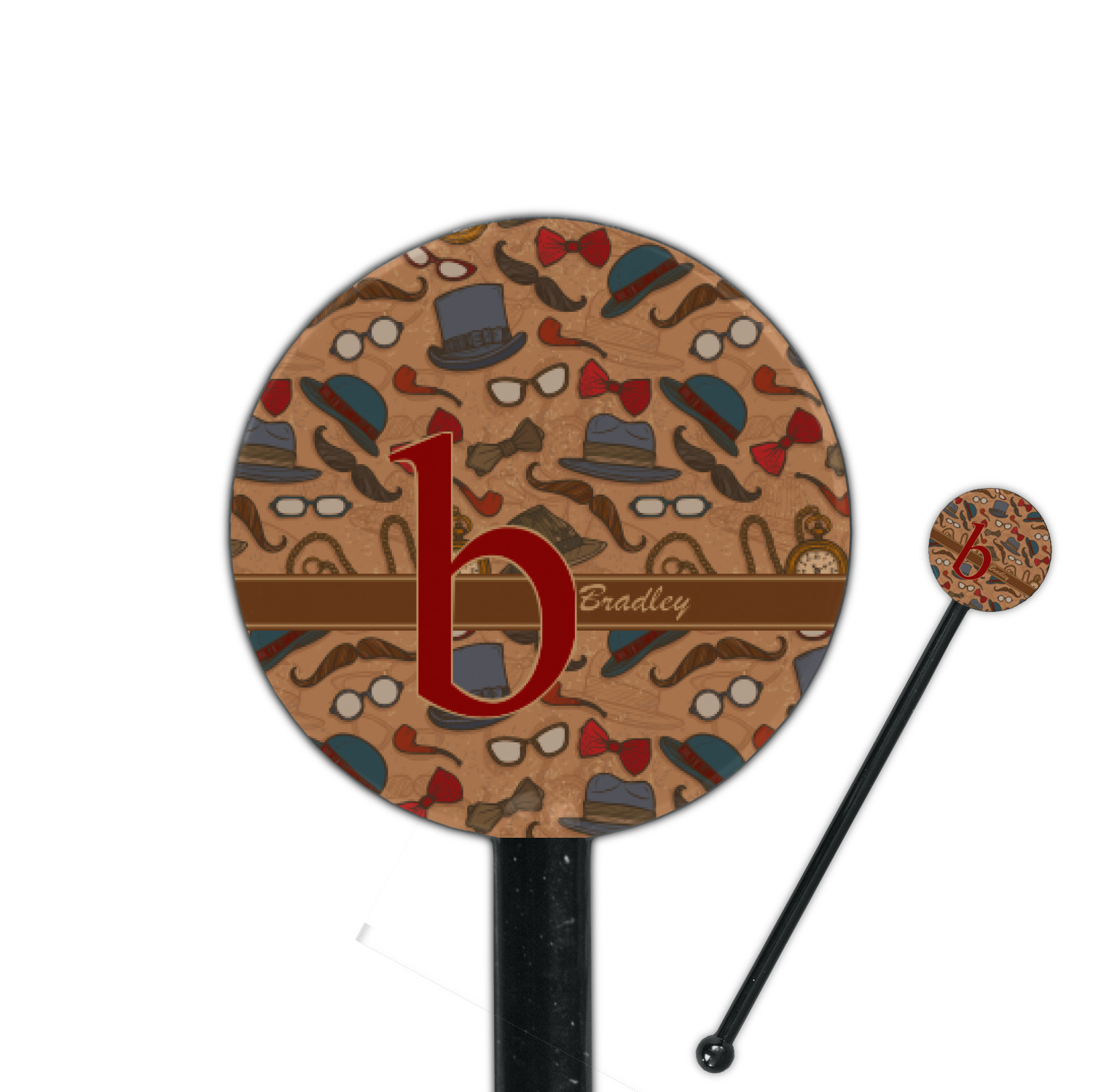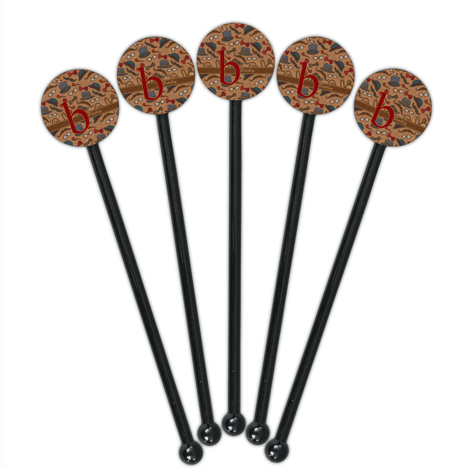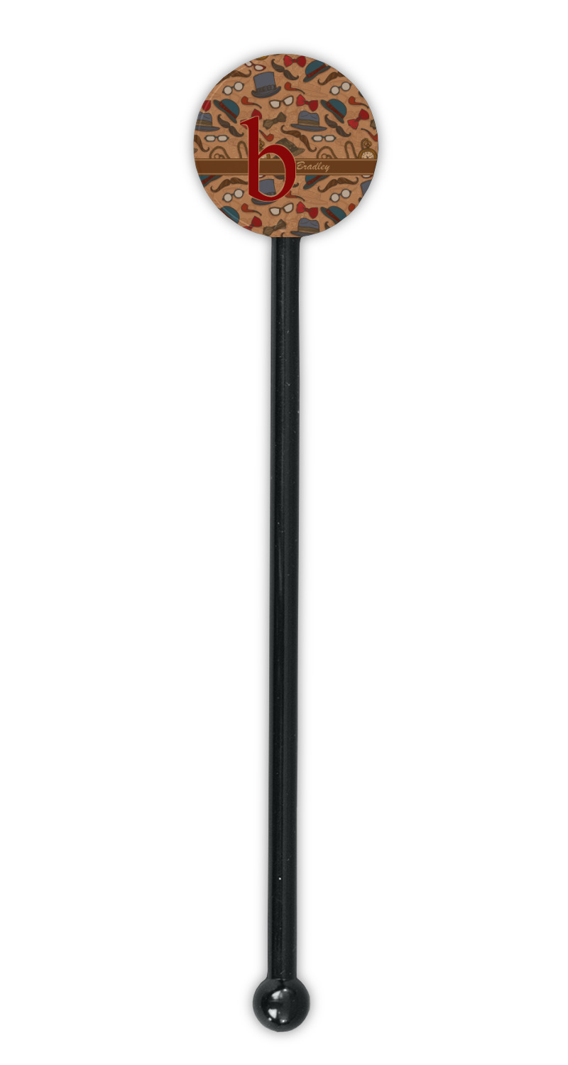 Vintage Designs for 5.5" Round Plastic Stir Sticks - Black - Double-Sided