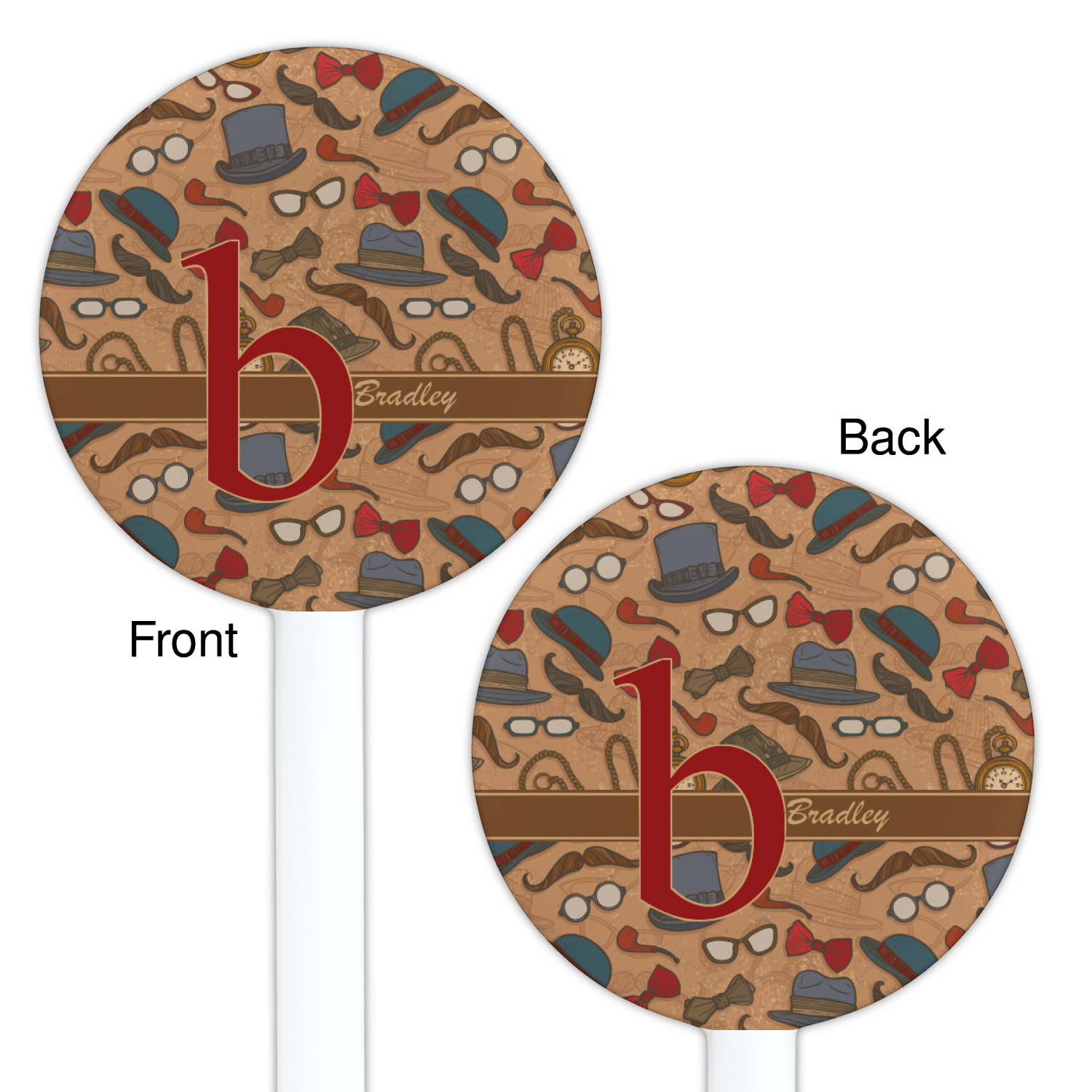 Vintage Designs for 5.5" Round Plastic Stir Sticks - White - Double-Sided