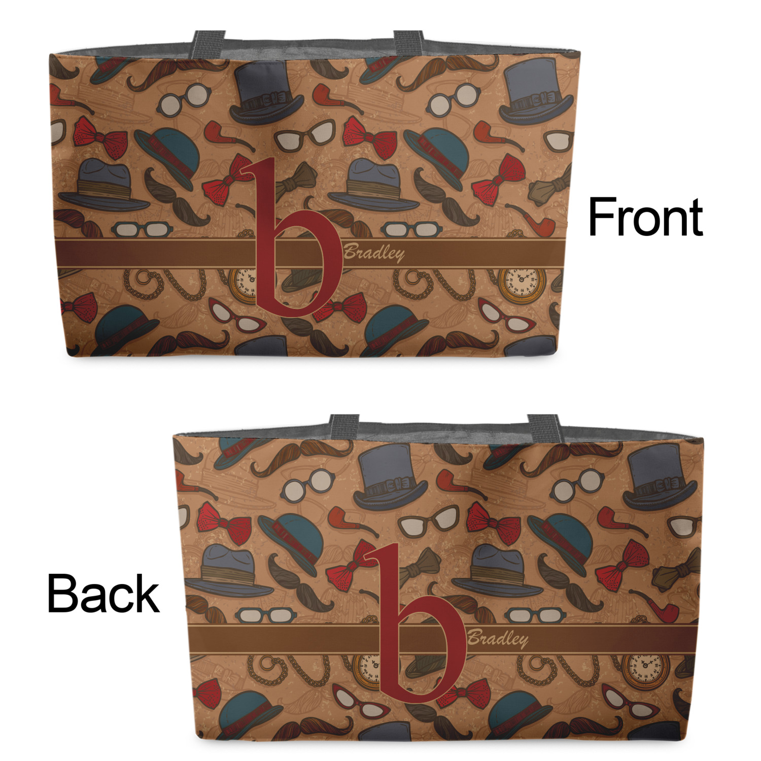 You can design the totes with a design on the front and another one on the back. The two designs can be identical or completely different. The choice is yours.