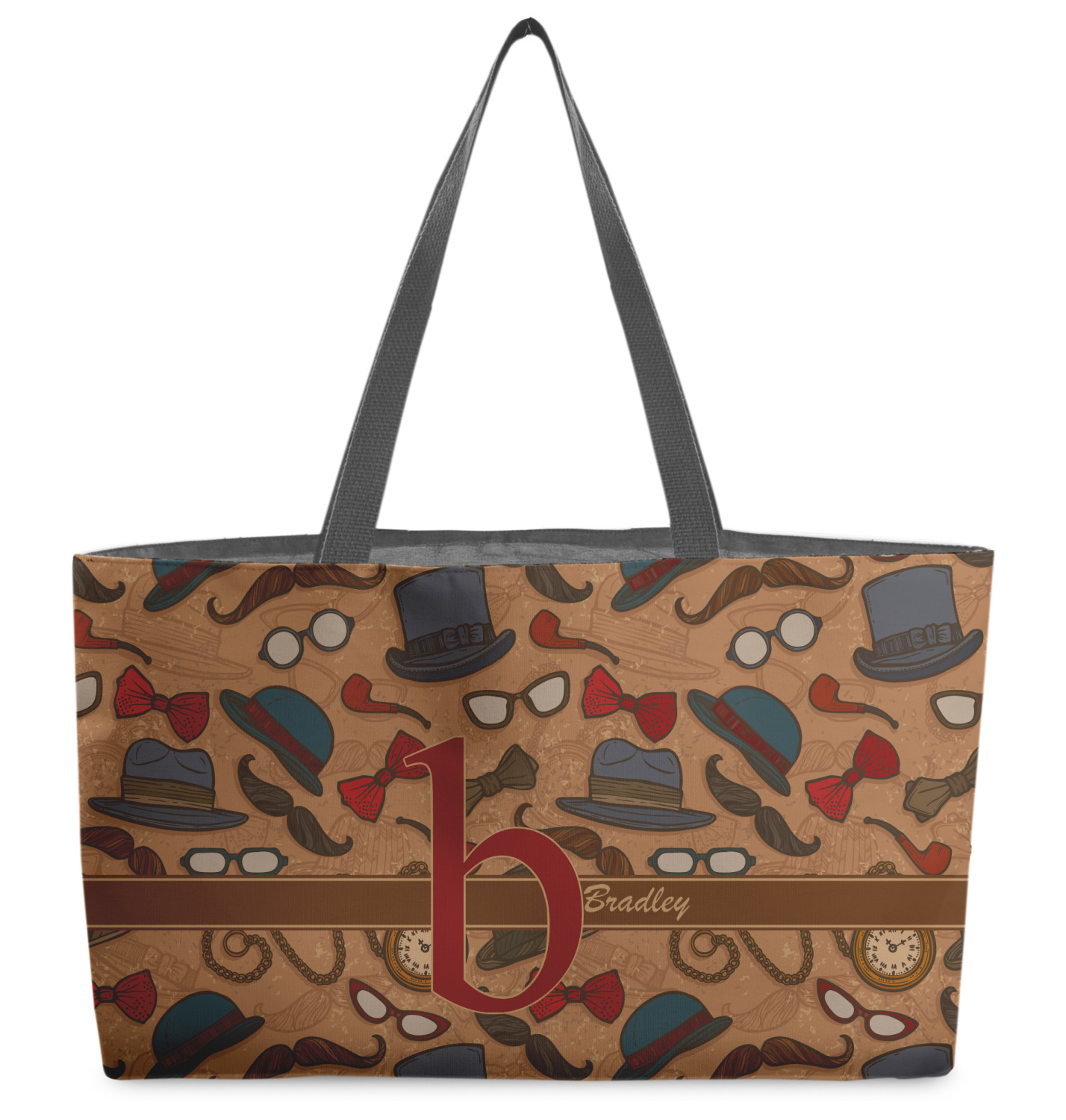 These beach totes are handmade here in the USA. Fabric is printed with your design. The tote is then sewn from the fabric pieces, lining and handles added.