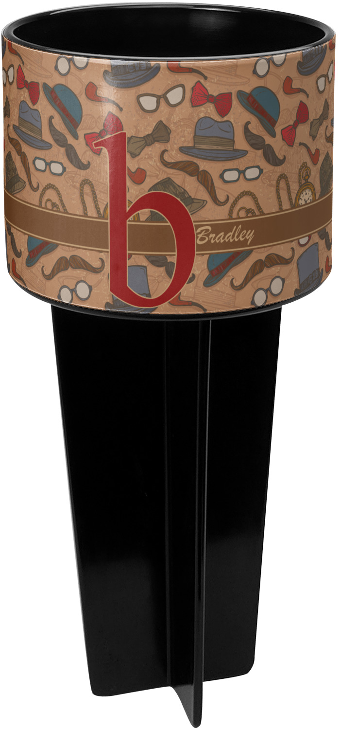 This cup holder has a large stake at its bottom that anchors it to the sand or ground below, while the cup holder rests above the stake. The entire drink holder is made of durable plastic and displays your customization around the cup holder portion. We sell these personalized beach spikers in two different colors: black and white.