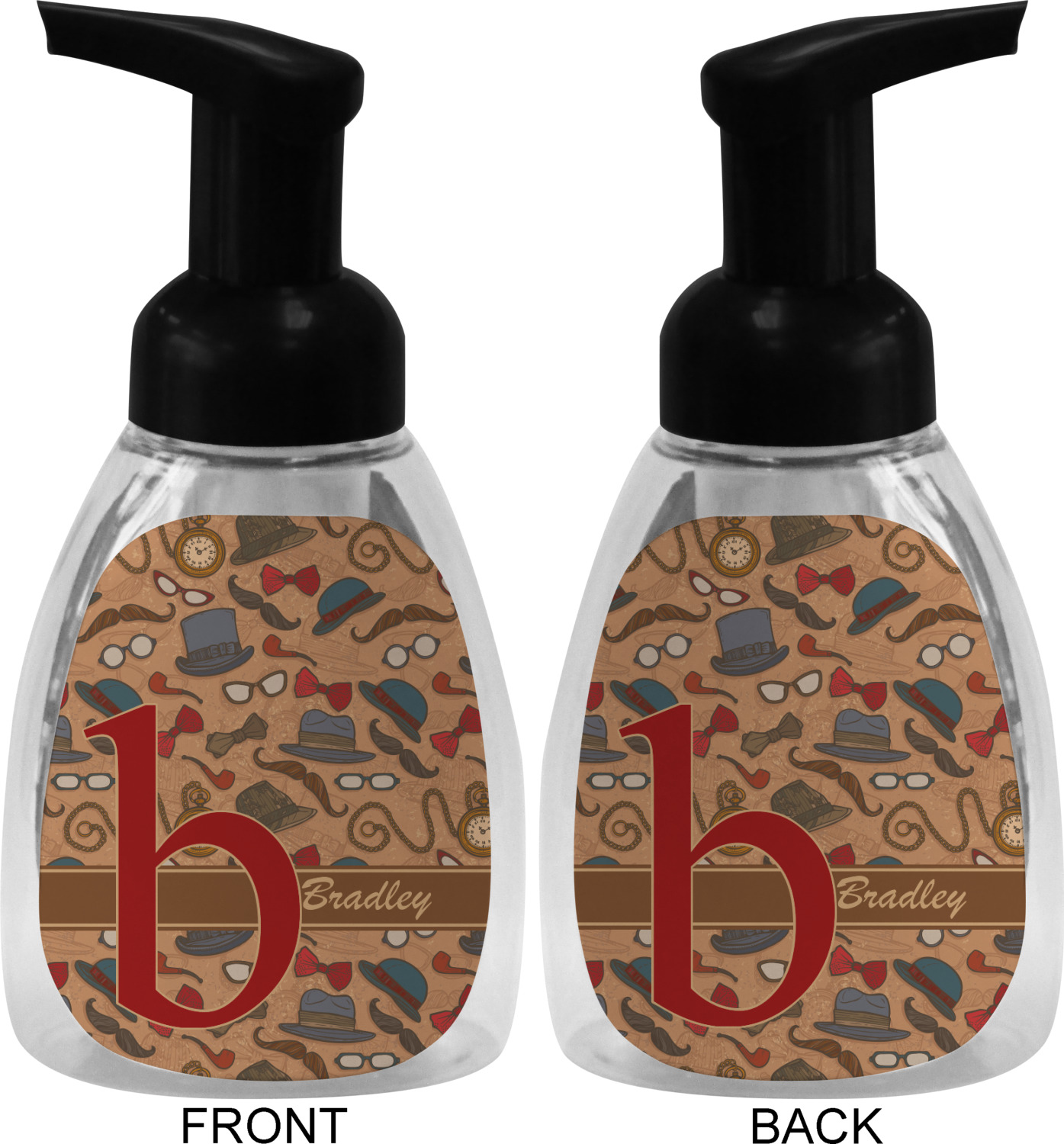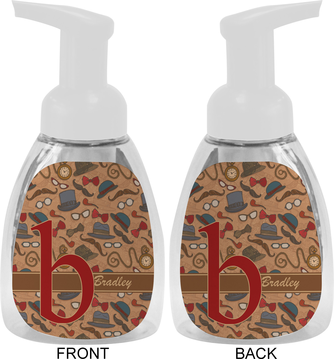 This soap dispenser is made of a robust plastic and has a clear base. The included soap pump is available in black or white color. This dispenser is 6.5 inches tall, 3 inches wide, and 2 inches deep. We display your customized designs on the front and back sides of these foaming hand soap dispensers.