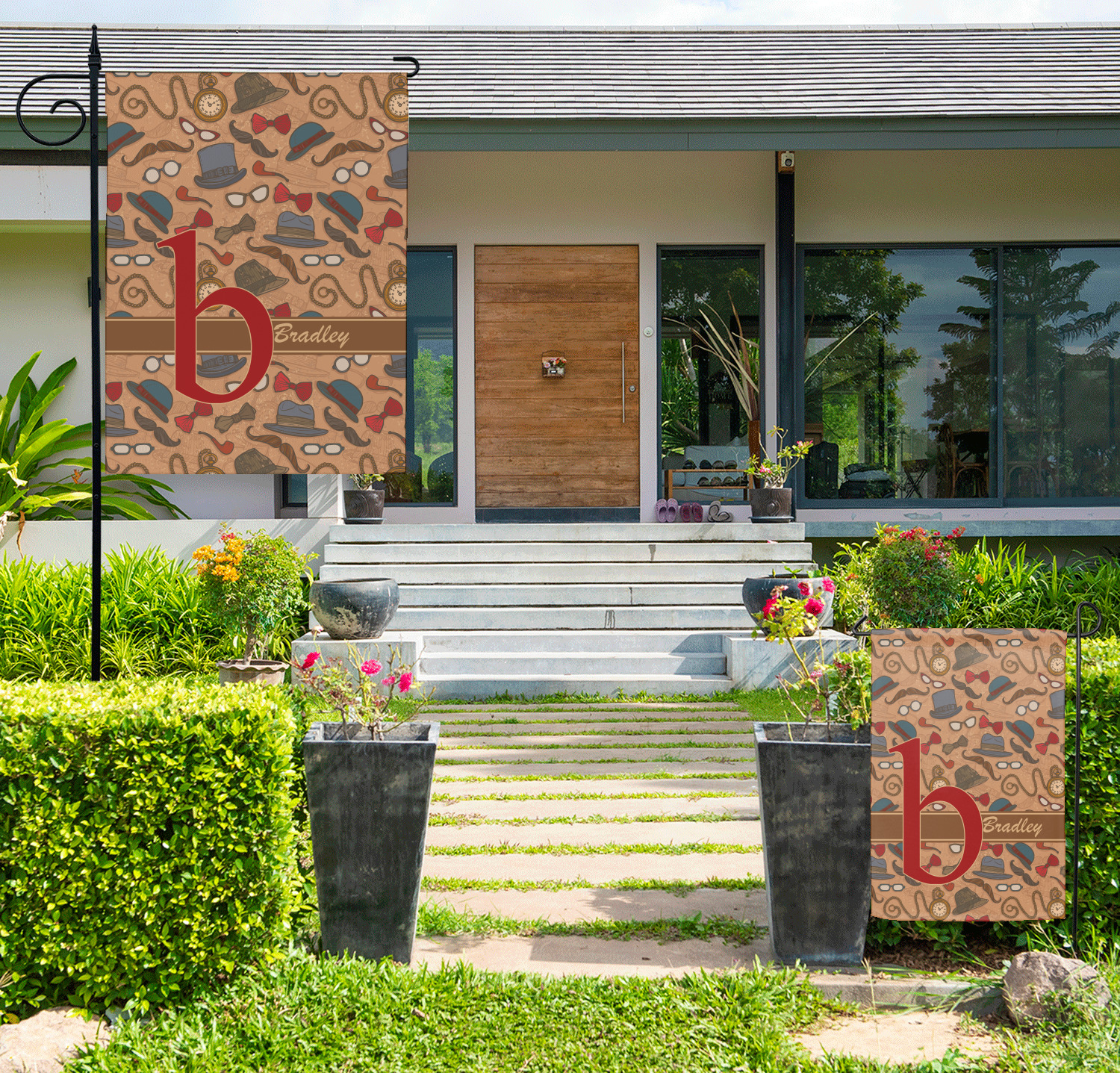 These custom garden flags are made of a durable, double-ply, polyester weave, allowing them to withstand the elements year round. The small flags measure at approximately 12 by 18 inches. The large flags measure out to 28 by 37 inches. You can order these decorative flags with your customization printed on the front only, or the front and back.