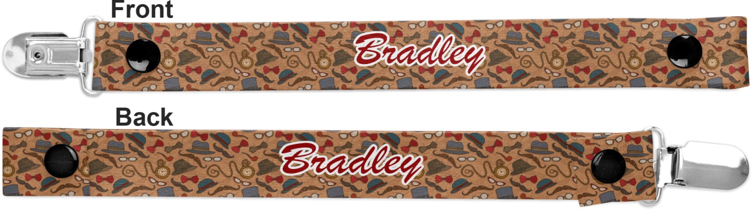 This personalized pacifier clip is the ideal size and measures at approximately 7.5 inches in length, when either end is snapped closed. On one end, you'll find a snap button. This button of your baby's pacifier holder is what can be attached to their pacifier to hold is securely in place. Simply open the snap, slip it through the pacifier opening, and snap it back into place. On the opposite end of this baby pacifier holder, you'll find a metal clip that can secure to a baby's collar or sleeve. This clip ensures that the strap stays in place, and that your baby's pacifier is always on hand.