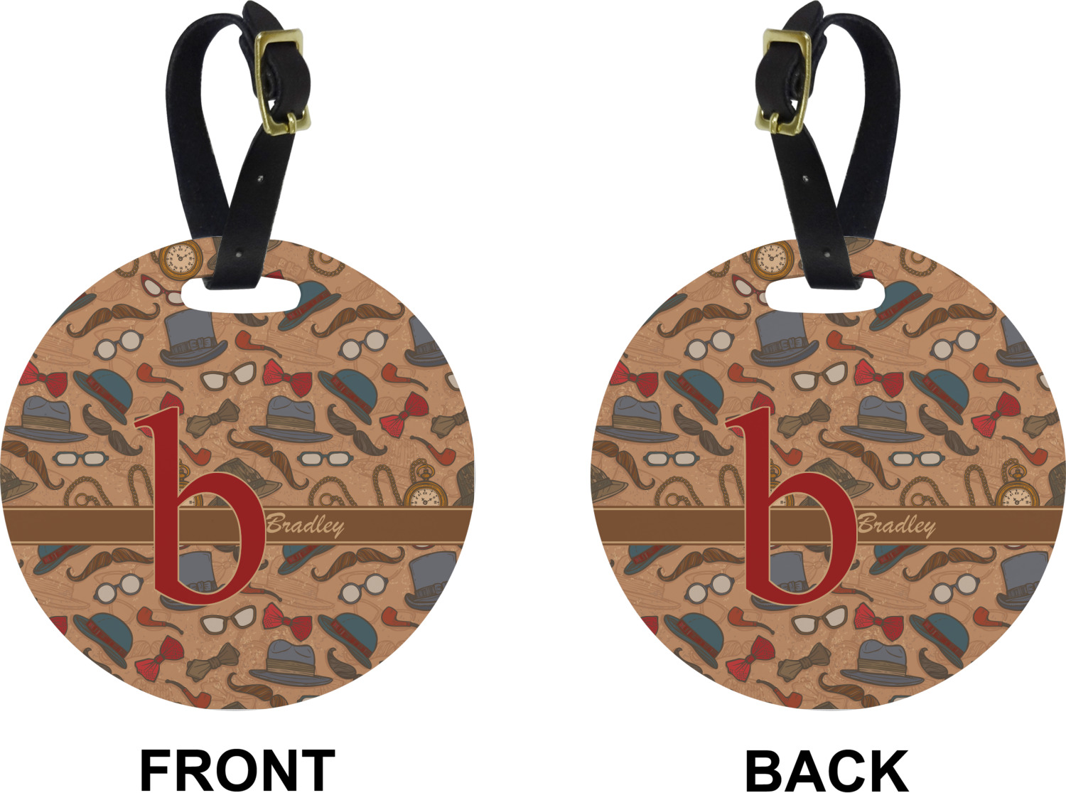 These personalized bag tags are sold in a variety of shapes, so that you may find the product that meets your vision exactly. We sell a round luggage tag, which measures at approximately 4" x 4". Our square luggage tag is about 3.5" x 3.5", while our rectangular version is 2.75" x 4 ".