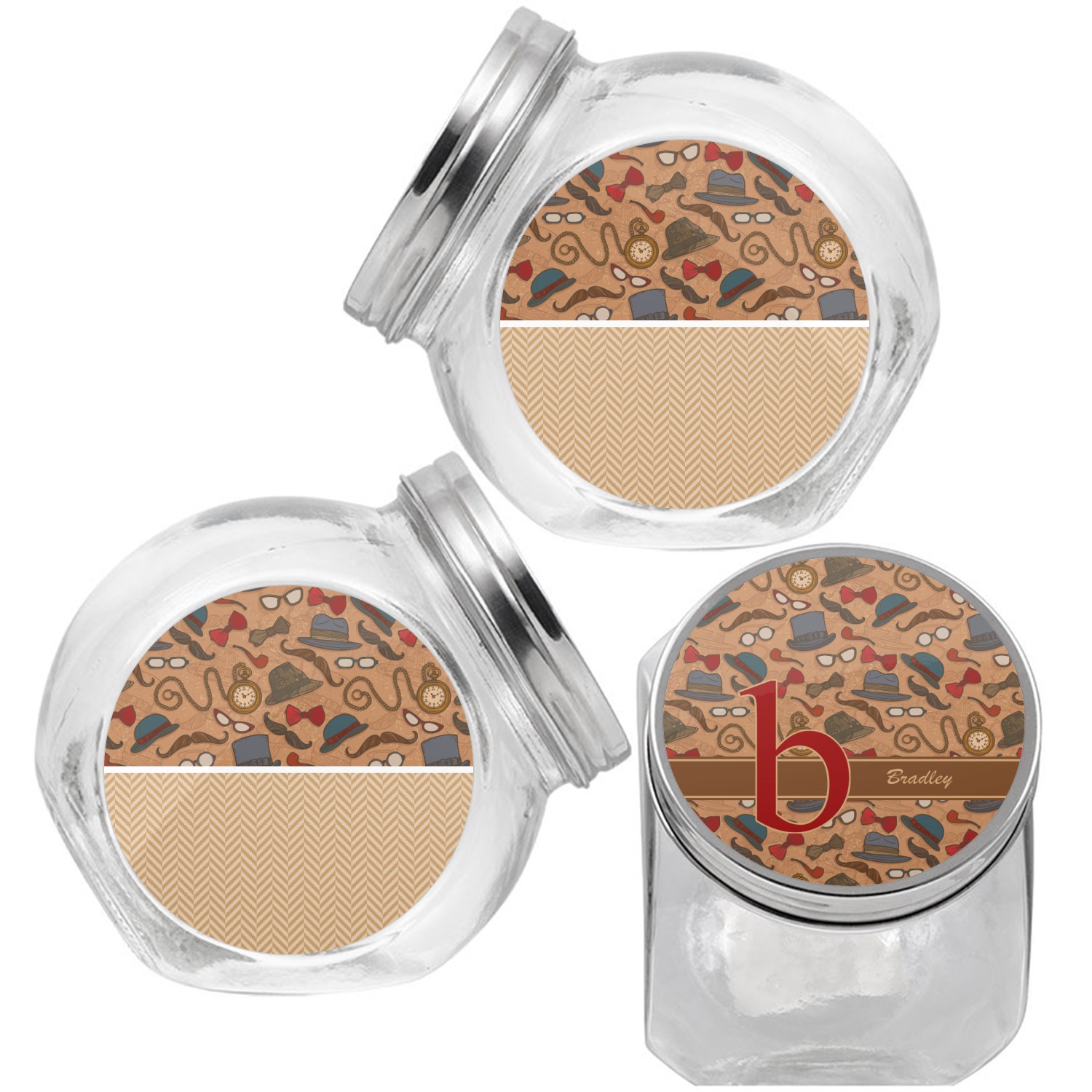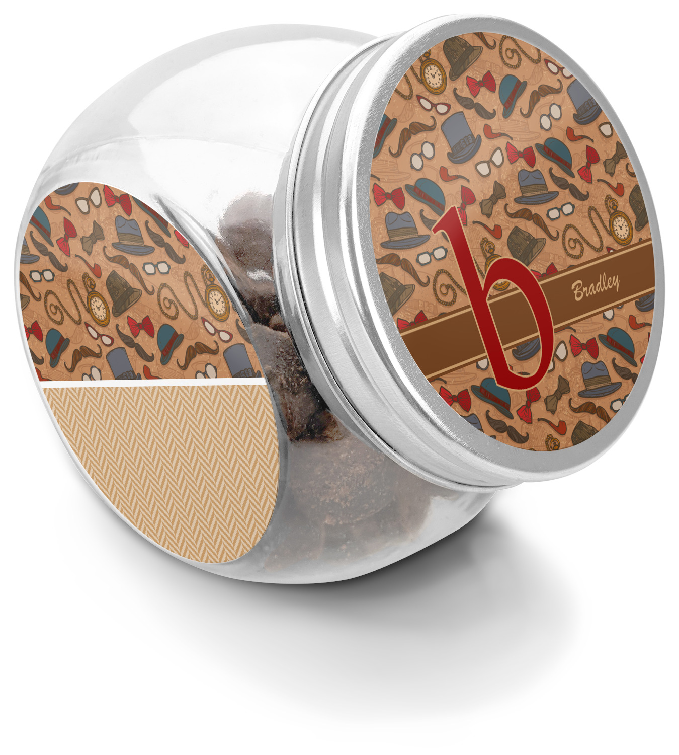 This treat jar is an excellent way to store treats for your favorite canine or feline. Moreover, their delicate, classy appearance makes them a tasteful addition to your countertop's décor. Crafted from clear glass, its unique construction and silver metal, screw-on lid allows for quick and easy access. Three, permanent, vinyl stickers are applied to both sides of the jar and lid, presenting your personalized design. The base of this glass, dog treat jar is 3.4" x 4.75", and the jar stands at 5" tall. Though on the smaller side, this jar is best suited for smaller treats or training treats.