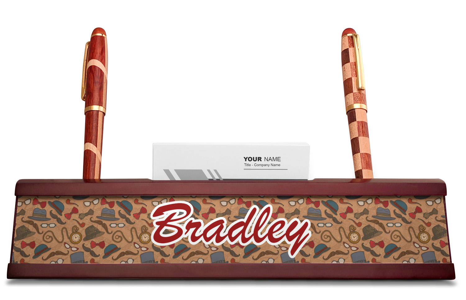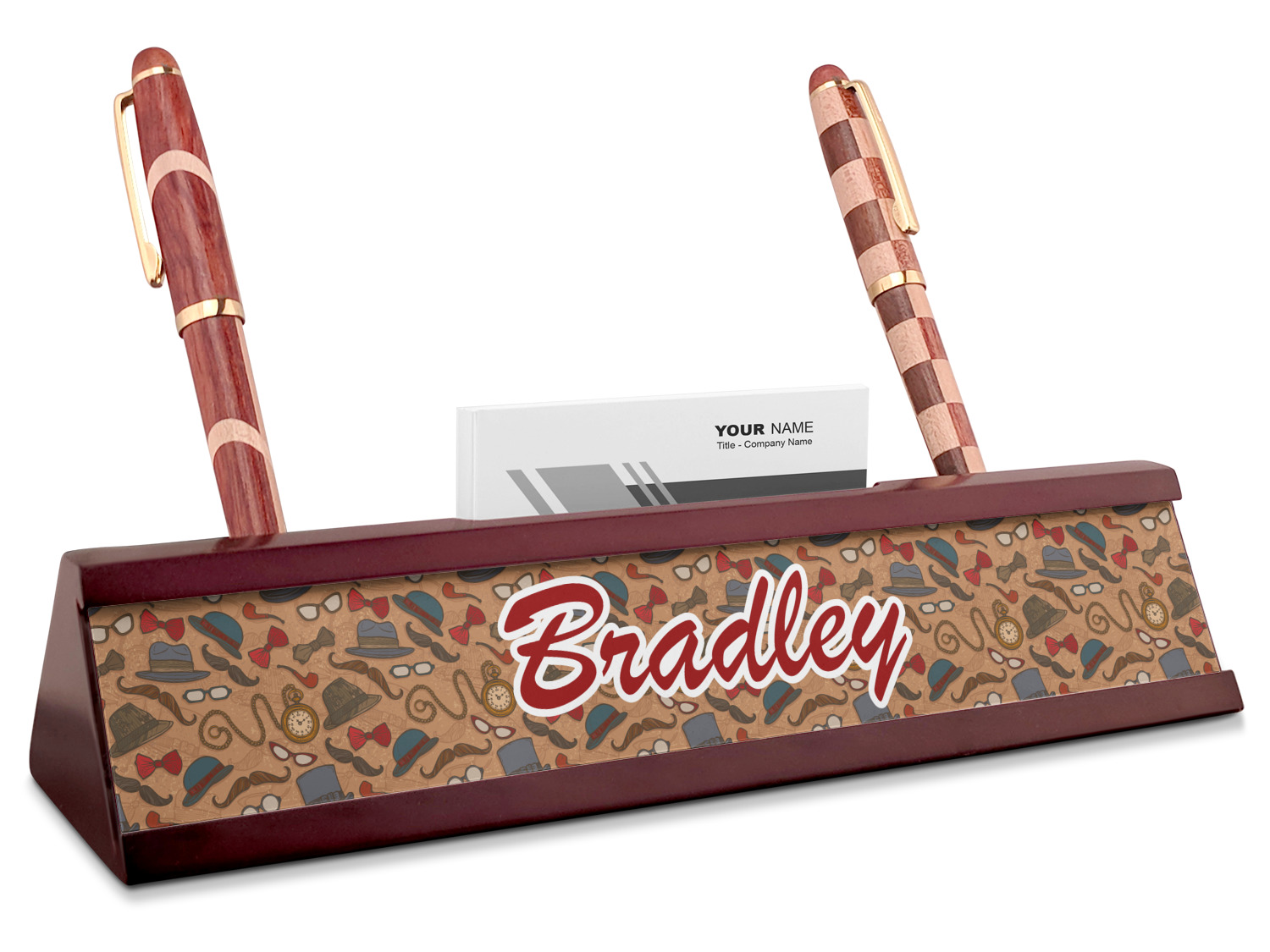 Mustache & Lip Designs for Red Mahogany Nameplates with Business Card Holder