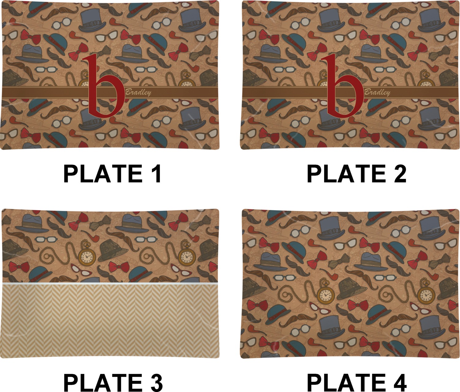 Mustache & Lip Designs for Glass Rectangular Appetizer / Dessert Plate - Set of 4