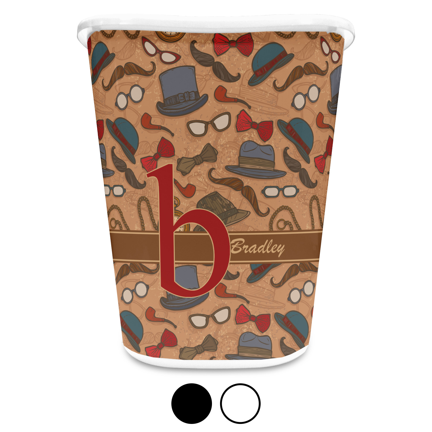 You can choose to purchase these decorative wastebaskets in either a white or a black color that will show on the base and the upper rim. Your customization is printed on a high-gloss, fine-quality vinyl adhesive, and you can choose to either have this adhesive applied to one side only or to both sides. As such, this plastic wastebasket can be single-sided or double-sided, depending on your creative vision. Your customization is printed using durable inks, making the design waterproof and resistant to fading over time.