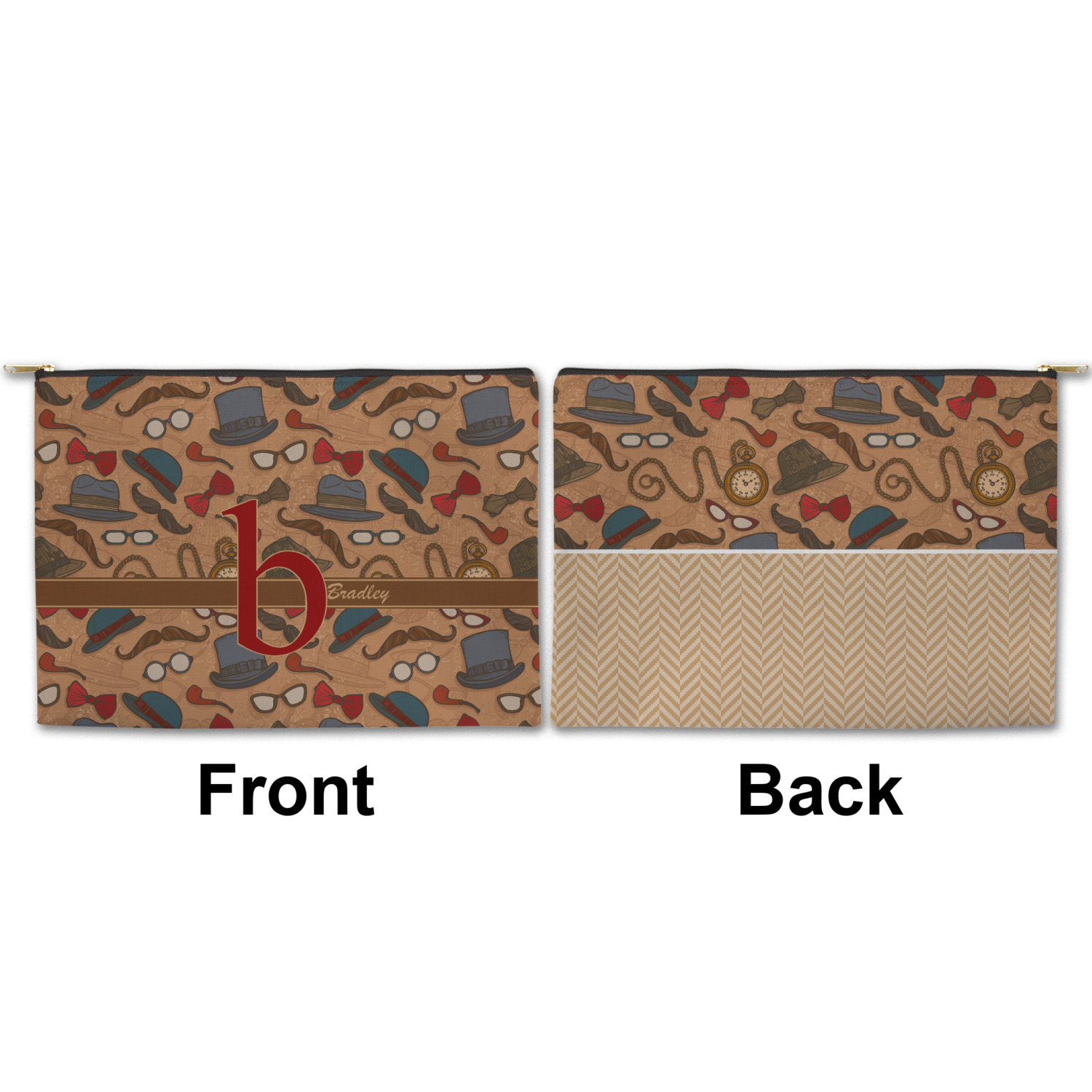 You can design both the front and the back of the pouch - same design, two complementary designs or two totally different designs - the choice is yours! We offer many different personalization styles i.e. name, name & initial, monograms - so the choice to personalize is also yours.