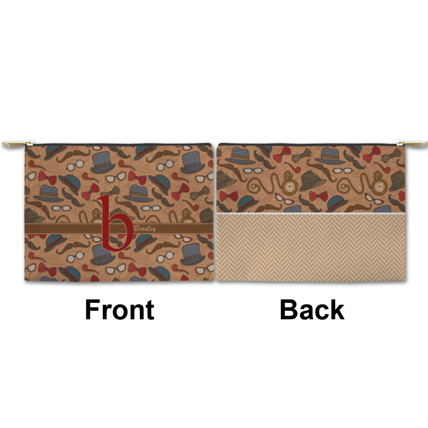 You can design both the front and the back of the pouch - same design, two complementary designs or two totally different designs - the choice is yours! We offer many different personalization styles i.e. name, name & initial, monograms - so the choice to personalize is also yours.