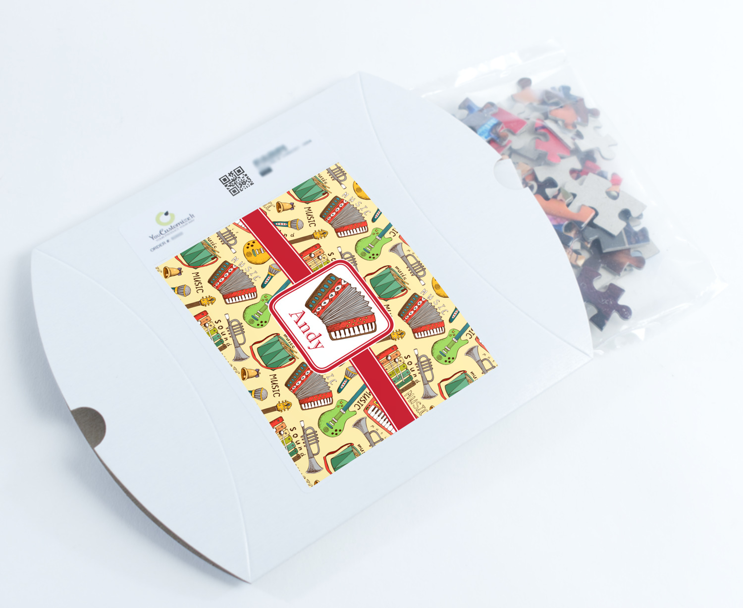 Depending on the look you are trying to achieve, you can add; a thematic pattern or background, with a photo in a frame and text or personalization to your puzzle. Basically if you can imagine it, you can design it!