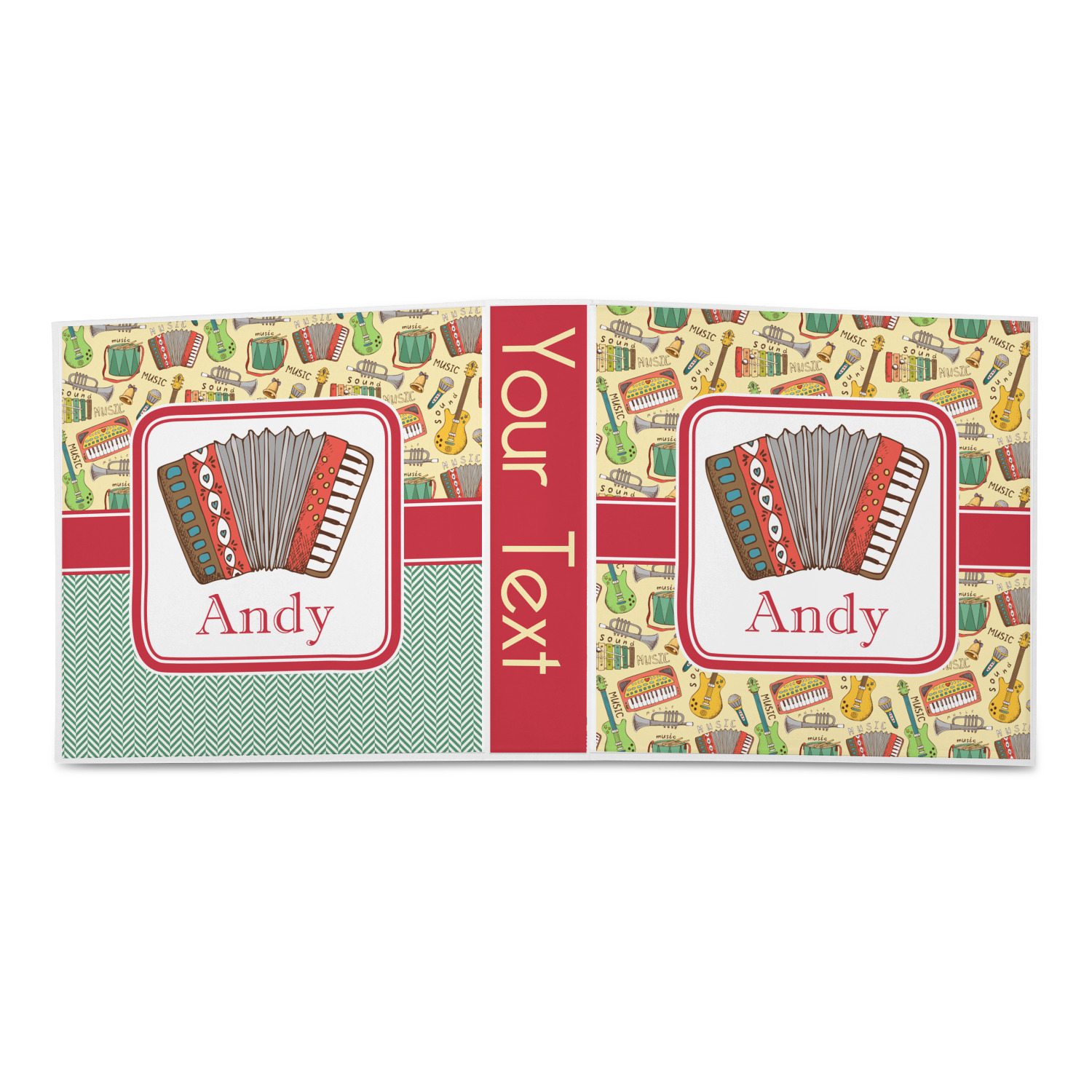 We have selected a classic red ribbon along with a square label that features the accordion along with a name for the personalization. You have a choice of instruments to feature on the label - your choices are: vintage guitar, xylophone, accordion, trumpet, keyboard, drum, microphone or bell and of course you can personalize it with your choice of text.