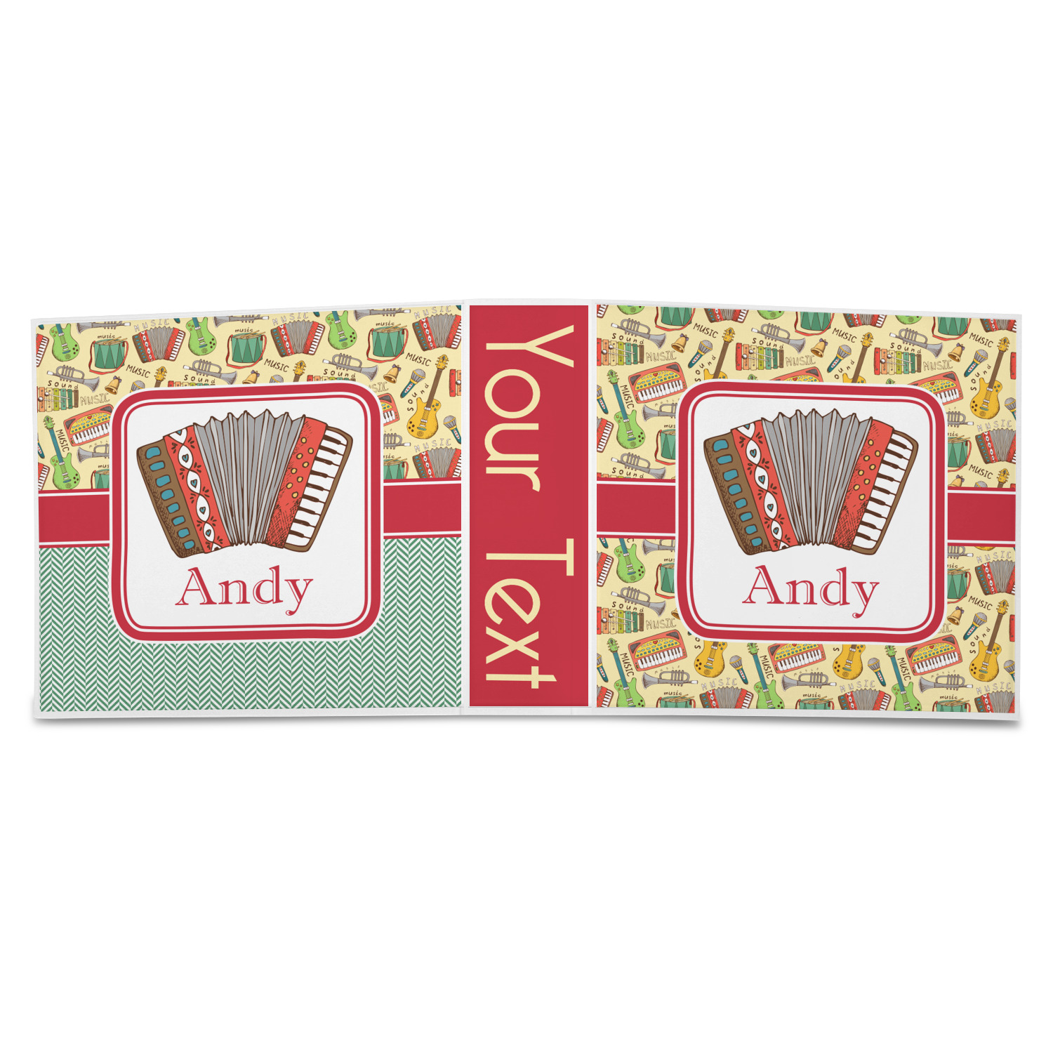 We have selected a classic red ribbon along with a square label that features the accordion along with a name for the personalization. You have a choice of instruments to feature on the label - your choices are: vintage guitar, xylophone, accordion, trumpet, keyboard, drum, microphone or bell and of course you can personalize it with your choice of text.