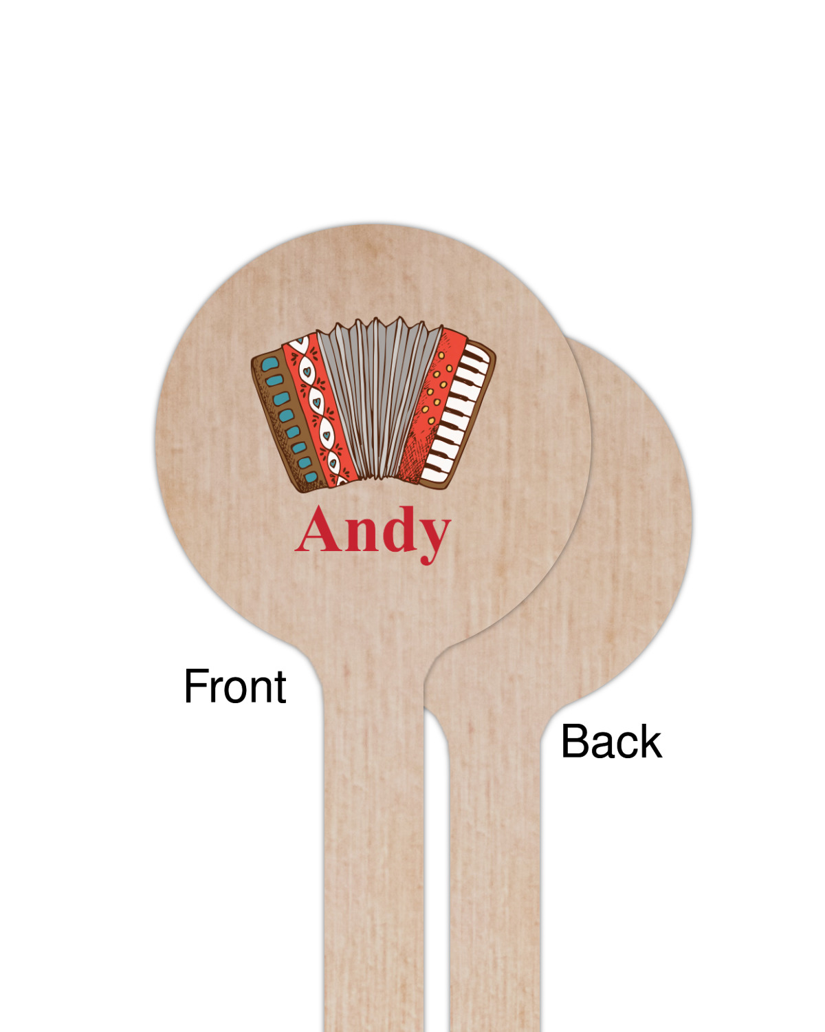We have selected a classic red ribbon along with a square label that features the accordion along with a name for the personalization. You have a choice of instruments to feature on the label - your choices are: vintage guitar, xylophone, accordion, trumpet, keyboard, drum, microphone or bell and of course you can personalize it with your choice of text.