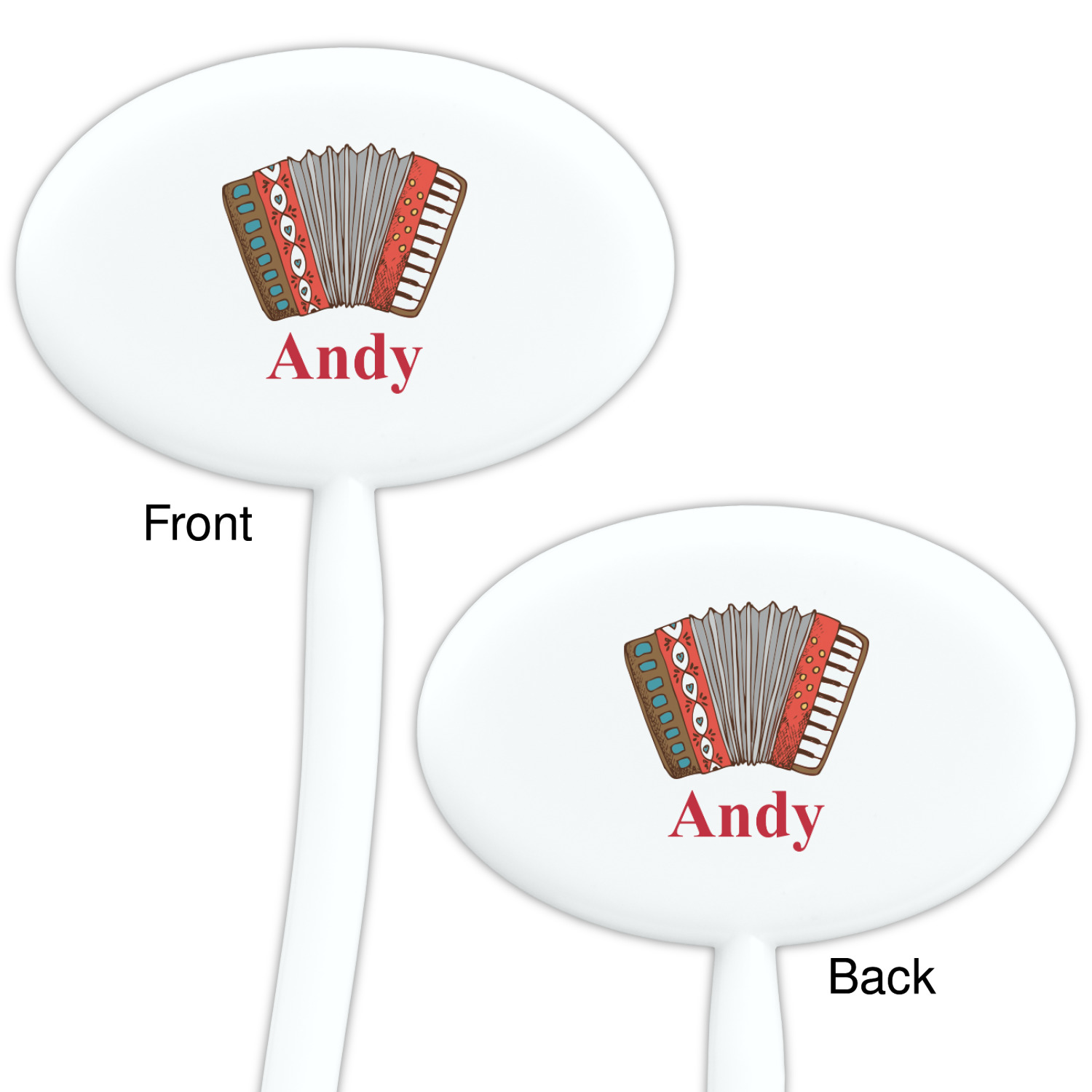 We have selected a classic red ribbon along with a square label that features the accordion along with a name for the personalization. You have a choice of instruments to feature on the label - your choices are: vintage guitar, xylophone, accordion, trumpet, keyboard, drum, microphone or bell and of course you can personalize it with your choice of text.