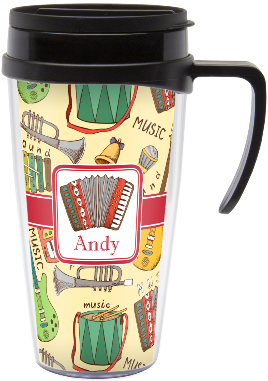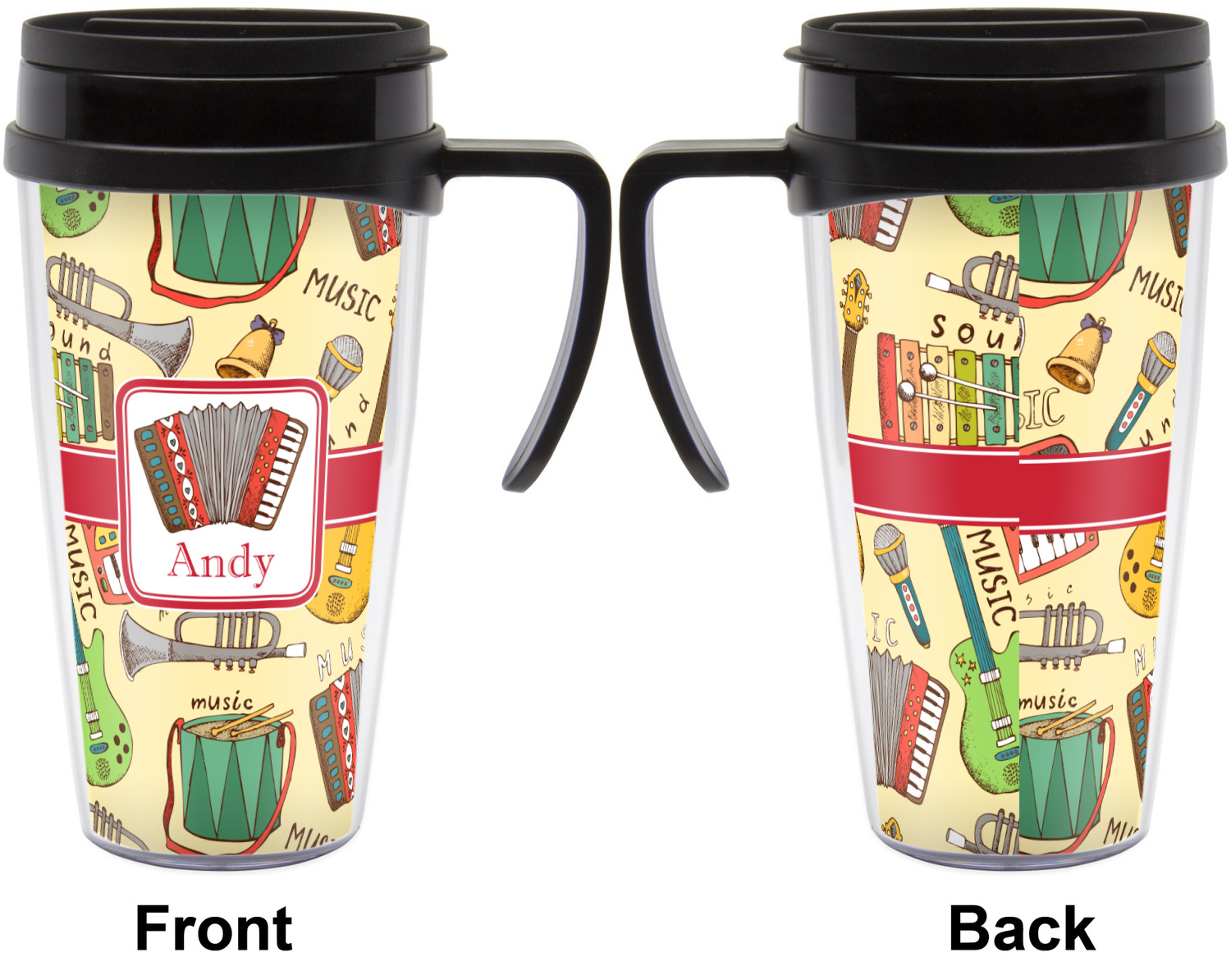 These thermal mugs are free of BPA, and insulated, to keep your drinks hot or cold. The black, snap on lid and the slider for sipping allows you to conveniently sip your drink without constantly worrying about a disastrous spill. We offer this mug with and without a handle, to better suit your needs. Each custom thermal mug holds up to 16 ounces of liquid and displays your customization on all sides on premium gloss media inserts.