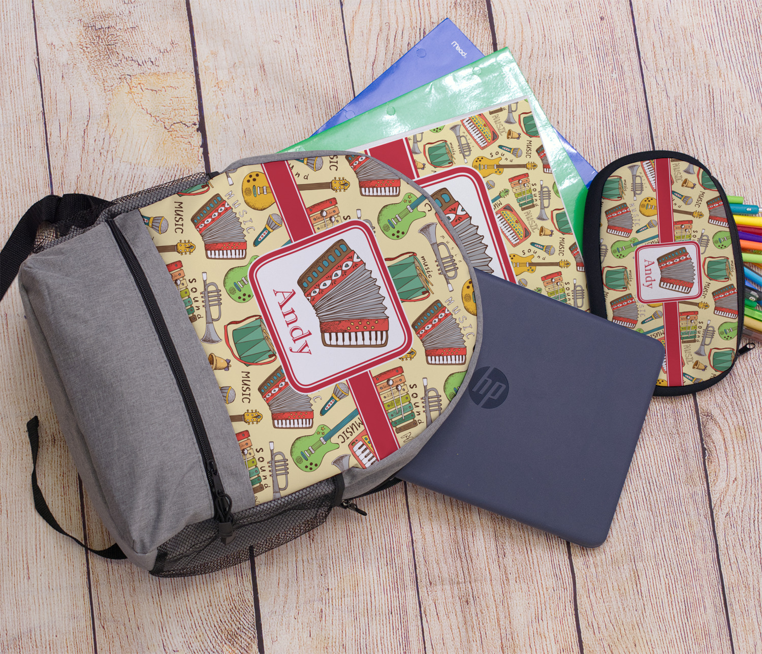 We have selected a classic red ribbon along with a square label that features the accordion along with a name for the personalization. You have a choice of instruments to feature on the label - your choices are: vintage guitar, xylophone, accordion, trumpet, keyboard, drum, microphone or bell and of course you can personalize it with your choice of text.