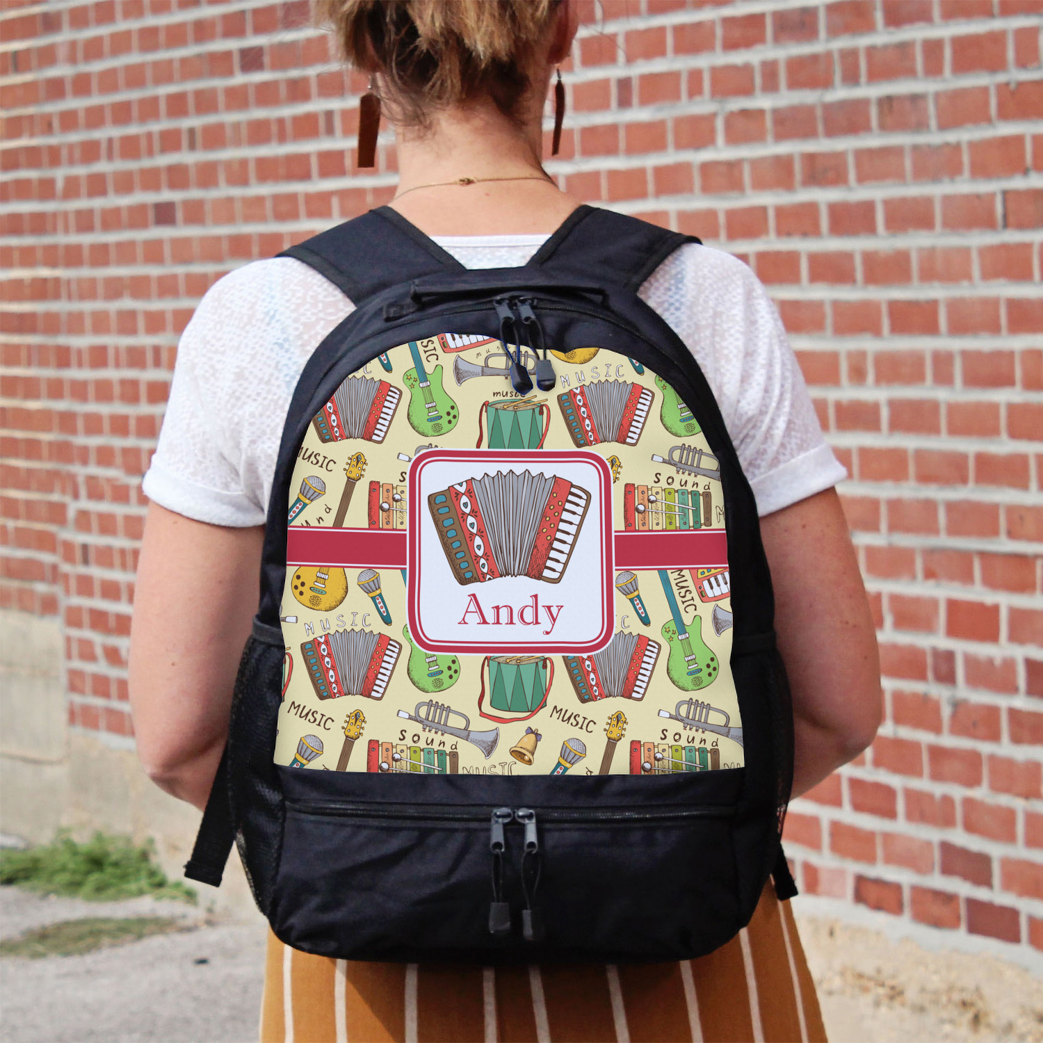 We have selected a classic red ribbon along with a square label that features the accordion along with a name for the personalization. You have a choice of instruments to feature on the label - your choices are: vintage guitar, xylophone, accordion, trumpet, keyboard, drum, microphone or bell and of course you can personalize it with your choice of text.