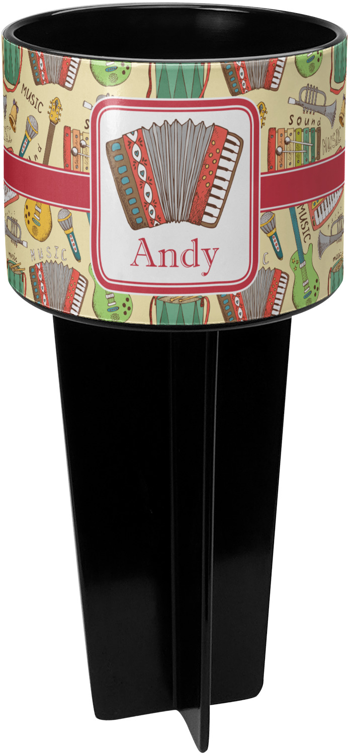 This cup holder has a large stake at its bottom that anchors it to the sand or ground below, while the cup holder rests above the stake. The entire drink holder is made of durable plastic and displays your customization around the cup holder portion. We sell these personalized beach spikers in two different colors: black and white.