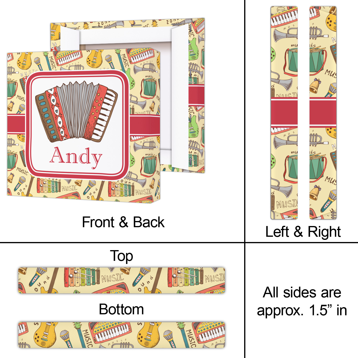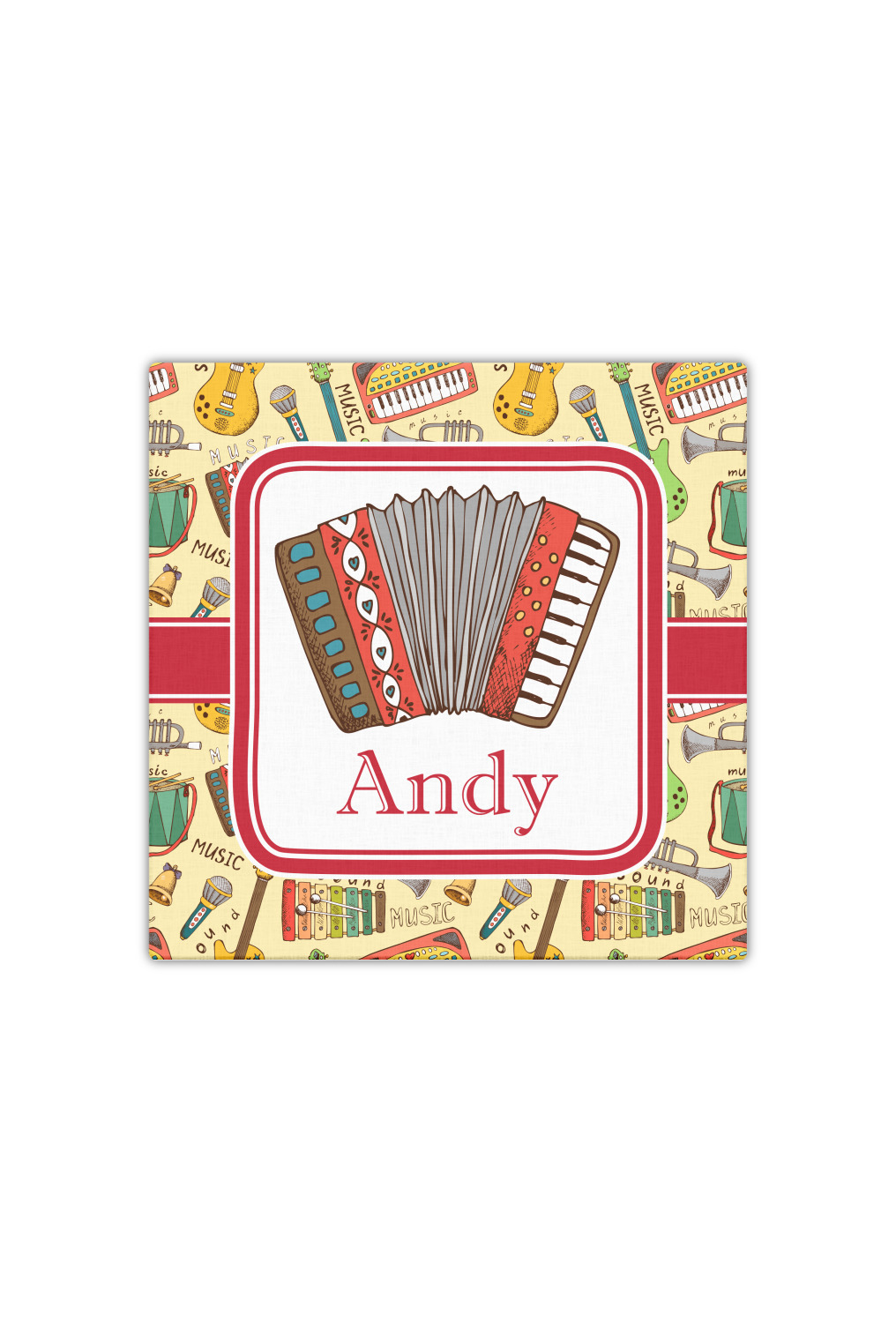We have selected a classic red ribbon along with a square label that features the accordion along with a name for the personalization. You have a choice of instruments to feature on the label - your choices are: vintage guitar, xylophone, accordion, trumpet, keyboard, drum, microphone or bell and of course you can personalize it with your choice of text.