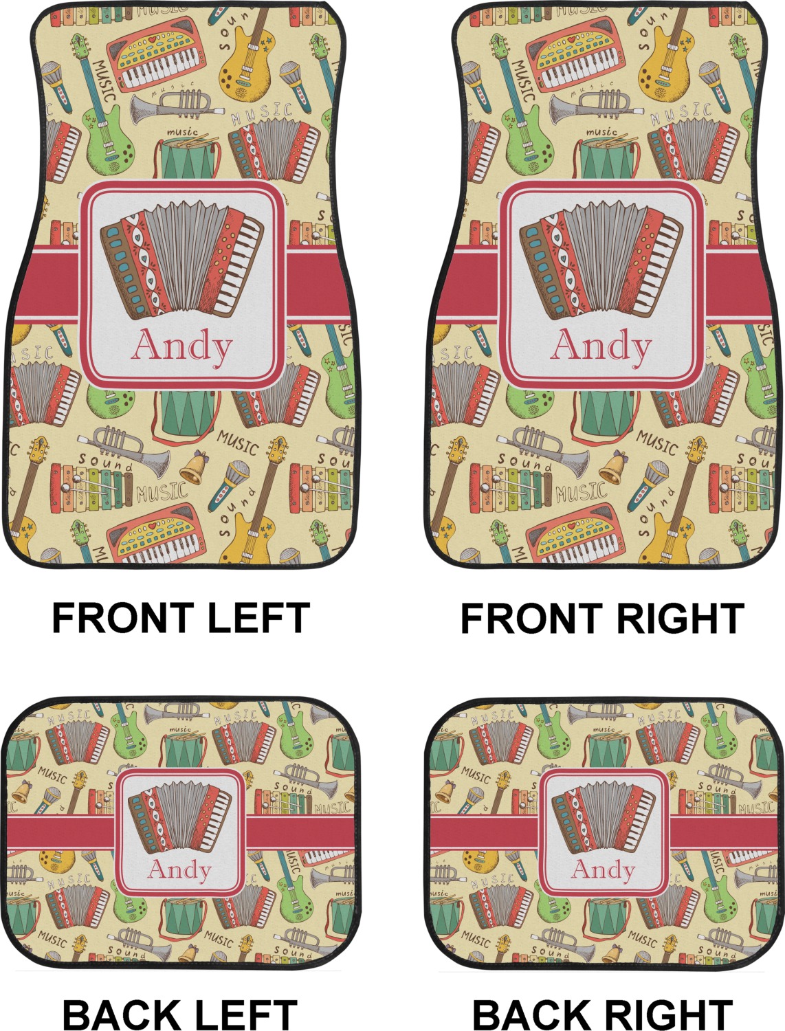 We craft our auto floor mats mats from polyester, apply a black finish to the edges, and lined at the bottom to prevent slippage. These mats protect your floors from grass, mud, and any accidental spills. We display your personalized design on the front face of each mat. The sizes of these car floor liners are standardized to provide a versatile fit for all vehicles. The front rows car mats measure at 17 by 26.5 inches, while the back rows measure at 17 by 13 inches. We sell three packages of car floor mats. You can purchase a pair of front row car mats, a pair of back row car mats, or a set of front row and back row car mats. To make an informed purchase, we recommend measuring the surface area of your car floors.