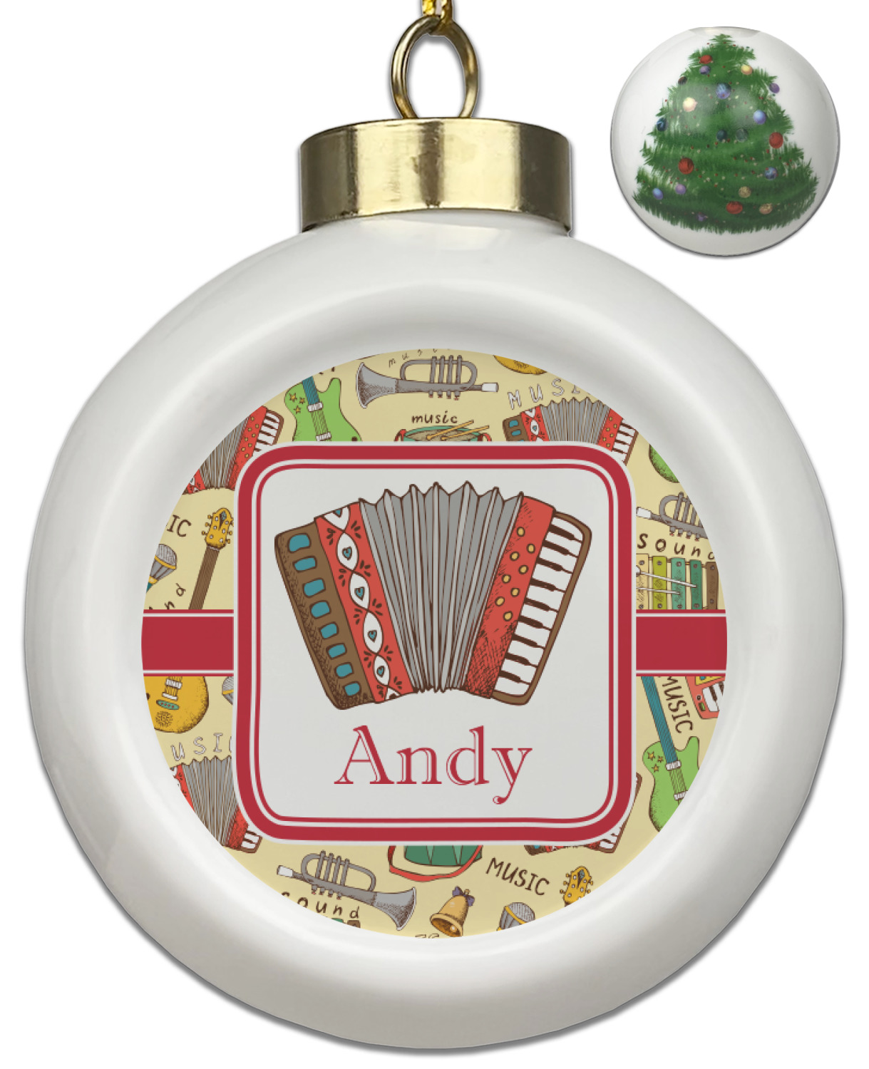 We have selected a classic red ribbon along with a square label that features the accordion along with a name for the personalization. You have a choice of instruments to feature on the label - your choices are: vintage guitar, xylophone, accordion, trumpet, keyboard, drum, microphone or bell and of course you can personalize it with your choice of text.