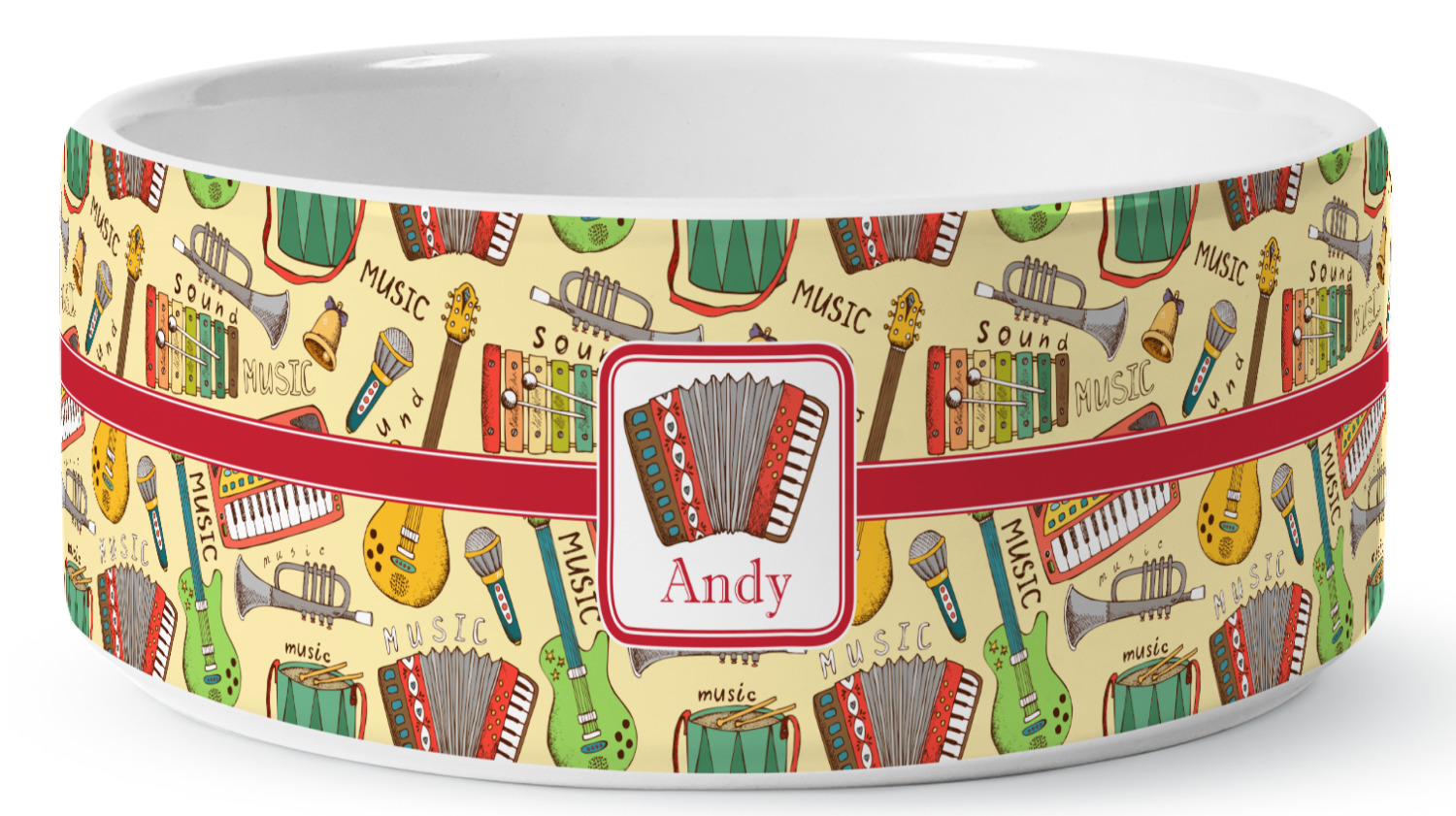 We carry these custom dog bowls in two available sizes: medium and large.The medium is 6 inches in diameter and 2.5 inches tall, and can therefore suit pets who eat up to 2.5 cups of food per meal. The large pet bowl is 7 inches in diameter and 3 inches tall, and suits pets who require up to 4.5 cups of food per meal.