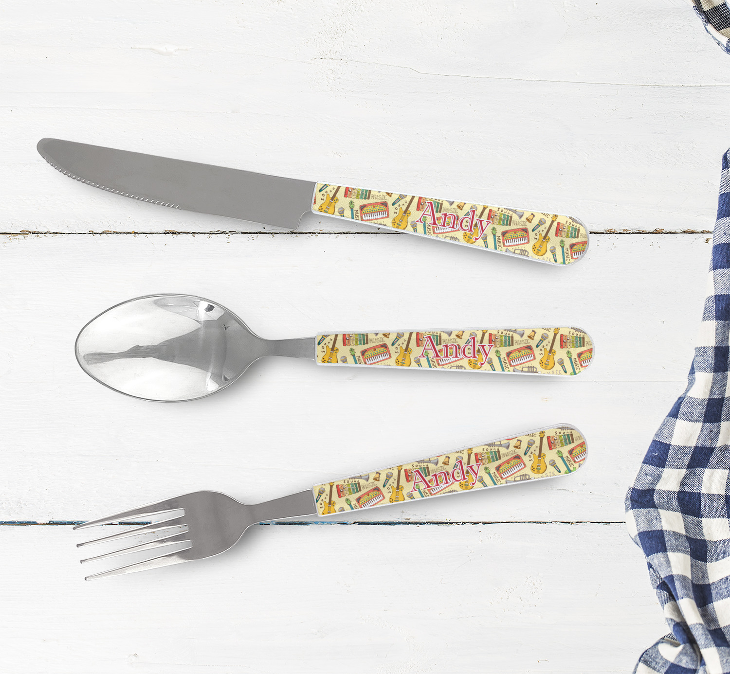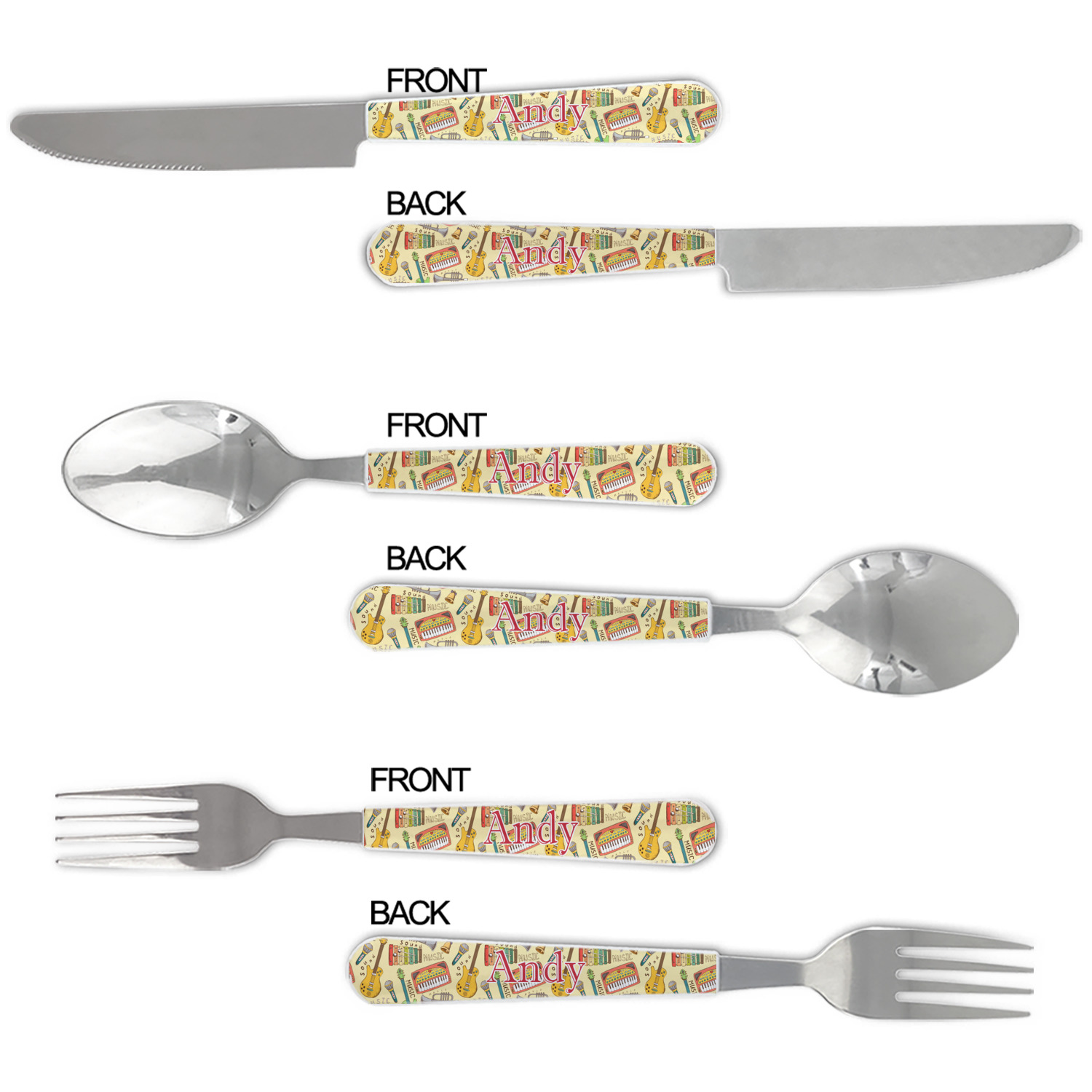 One of those items we all use on a daily basis and never give it much thought - cutlery. Having your own customized set of cutlery adds that special touch. A great addition to our custom plates and drinking pint glasses, this flatware set can be made in the same patterns to match.