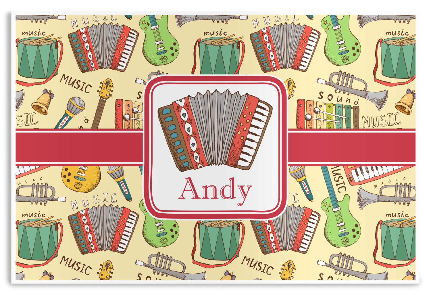 We have selected a classic red ribbon along with a square label that features the accordion along with a name for the personalization. You have a choice of instruments to feature on the label - your choices are: vintage guitar, xylophone, accordion, trumpet, keyboard, drum, microphone or bell and of course you can personalize it with your choice of text.