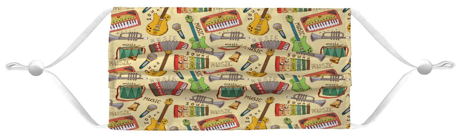 These fun face masks are 7" wide and 3.5" high. They feature pleats, adjustable ear loops, and are made with two layers of fabric. The top layer where your design is printed is a breathable polyester sheeting, while the inside layer is a soft microfiber polyester