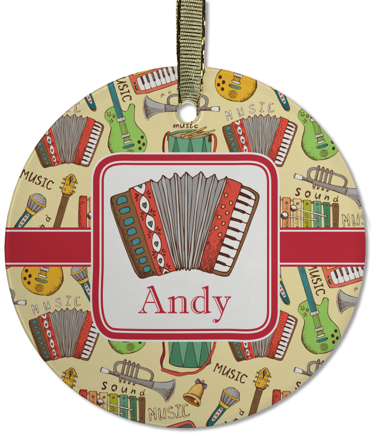 We have selected a classic red ribbon along with a square label that features the accordion along with a name for the personalization. You have a choice of instruments to feature on the label - your choices are: vintage guitar, xylophone, accordion, trumpet, keyboard, drum, microphone or bell and of course you can personalize it with your choice of text.