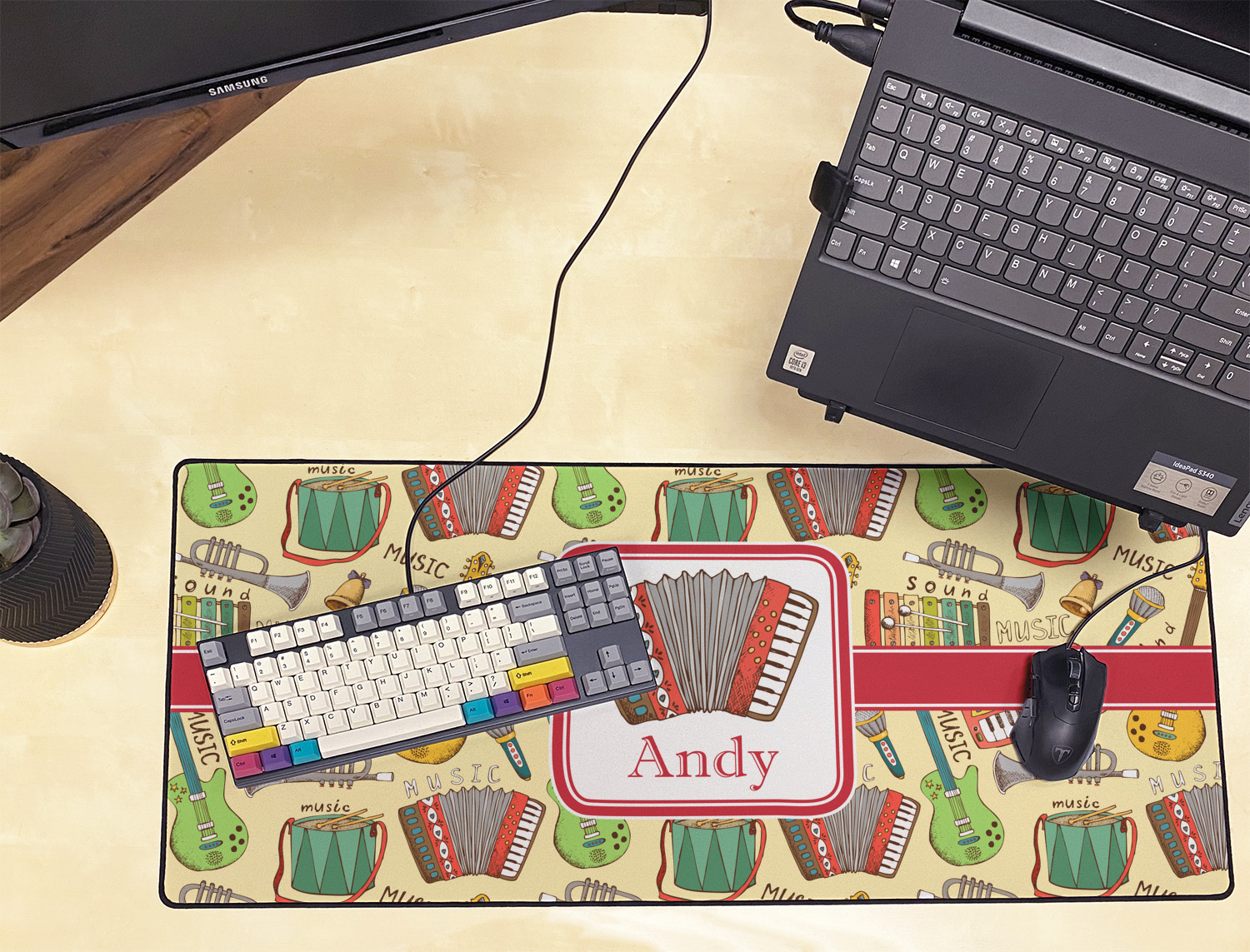 We have selected a classic red ribbon along with a square label that features the accordion along with a name for the personalization. You have a choice of instruments to feature on the label - your choices are: vintage guitar, xylophone, accordion, trumpet, keyboard, drum, microphone or bell and of course you can personalize it with your choice of text.