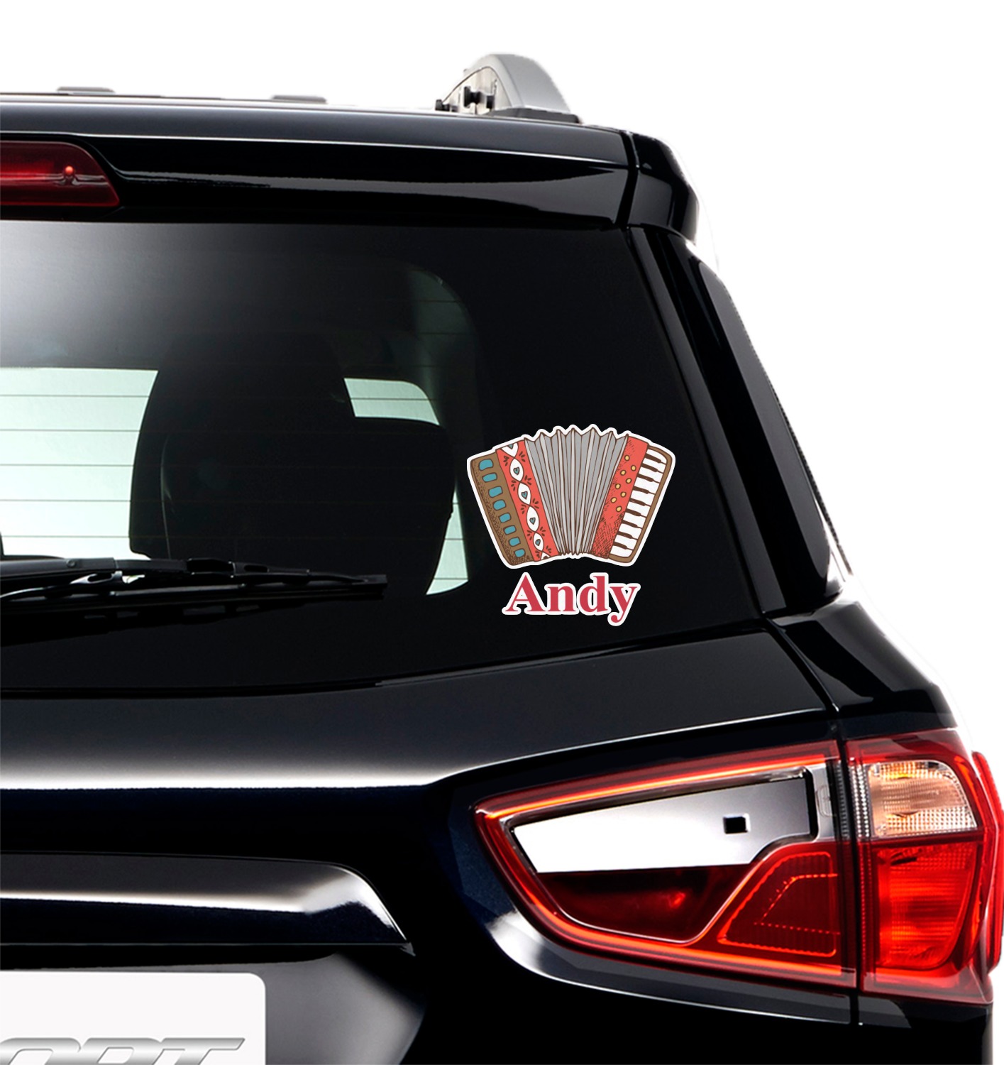 We have selected a classic red ribbon along with a square label that features the accordion along with a name for the personalization. You have a choice of instruments to feature on the label - your choices are: vintage guitar, xylophone, accordion, trumpet, keyboard, drum, microphone or bell and of course you can personalize it with your choice of text.