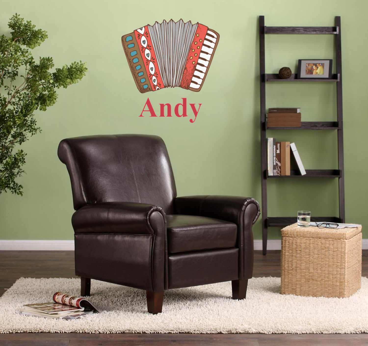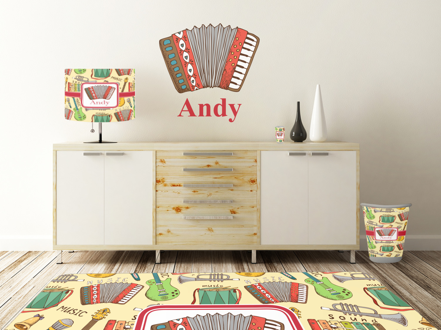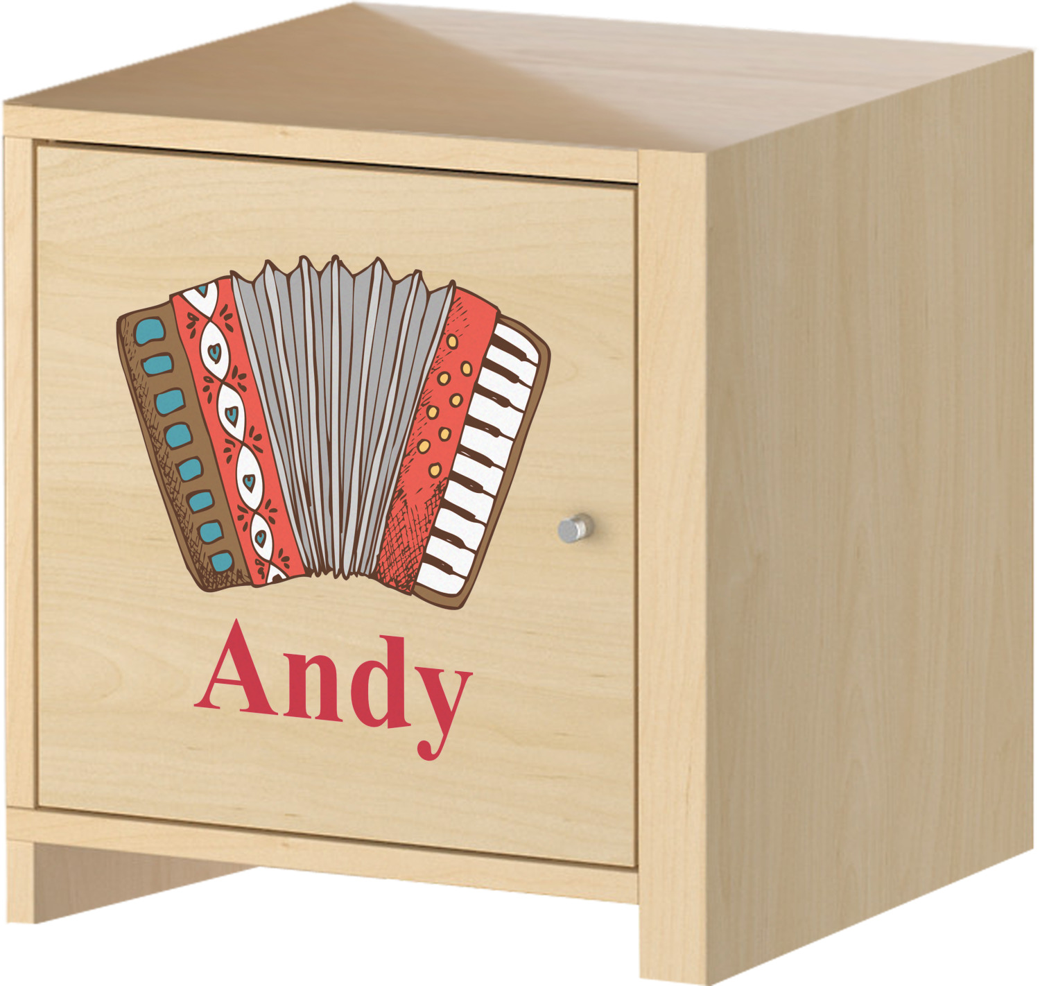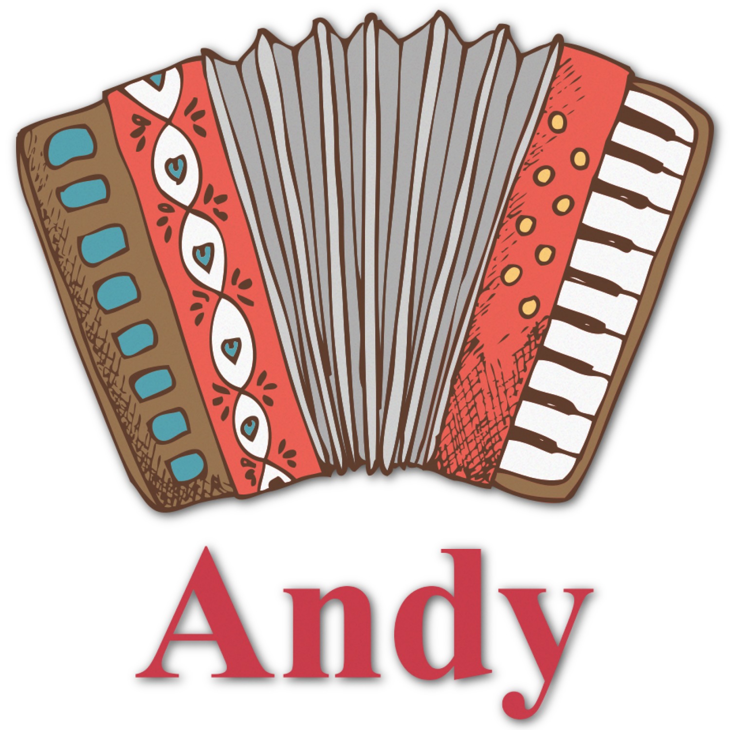 We have selected a classic red ribbon along with a square label that features the accordion along with a name for the personalization. You have a choice of instruments to feature on the label - your choices are: vintage guitar, xylophone, accordion, trumpet, keyboard, drum, microphone or bell and of course you can personalize it with your choice of text.