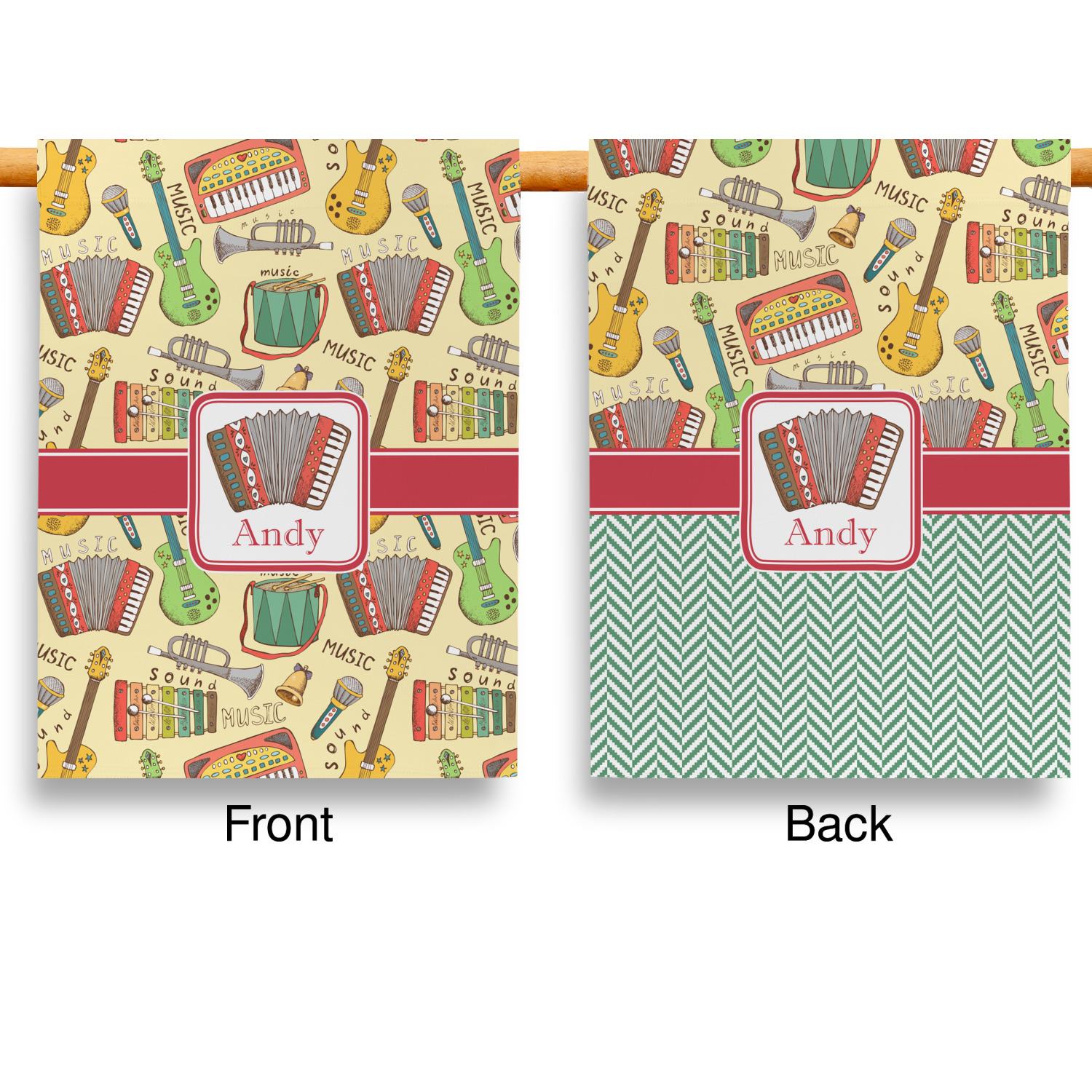 These custom garden flags are made of a durable, double-ply, polyester weave, allowing them to withstand the elements year round. The small flags measure at approximately 12 by 18 inches. The large flags measure out to 28 by 37 inches. You can order these decorative flags with your customization printed on the front only, or the front and back.
