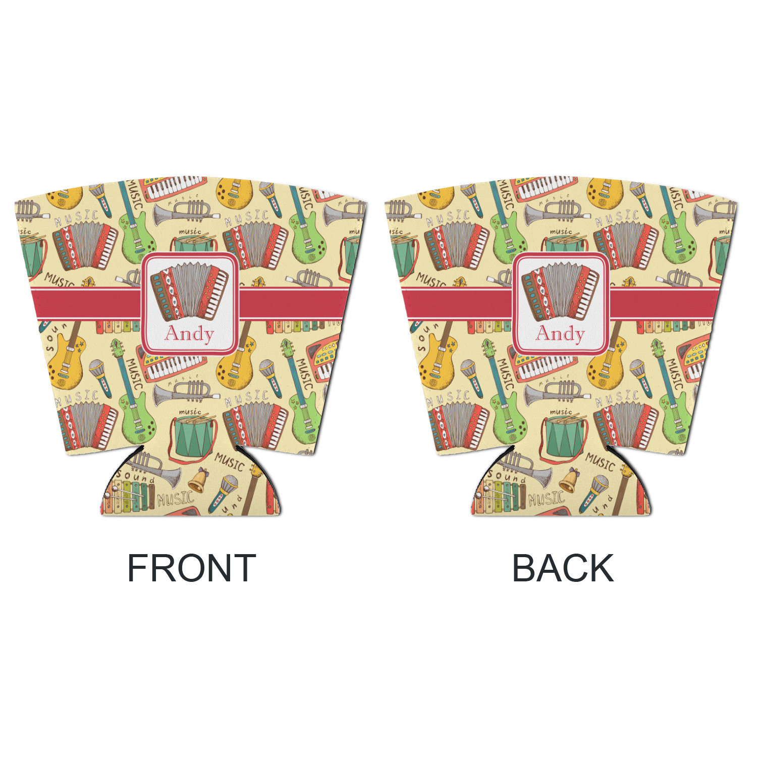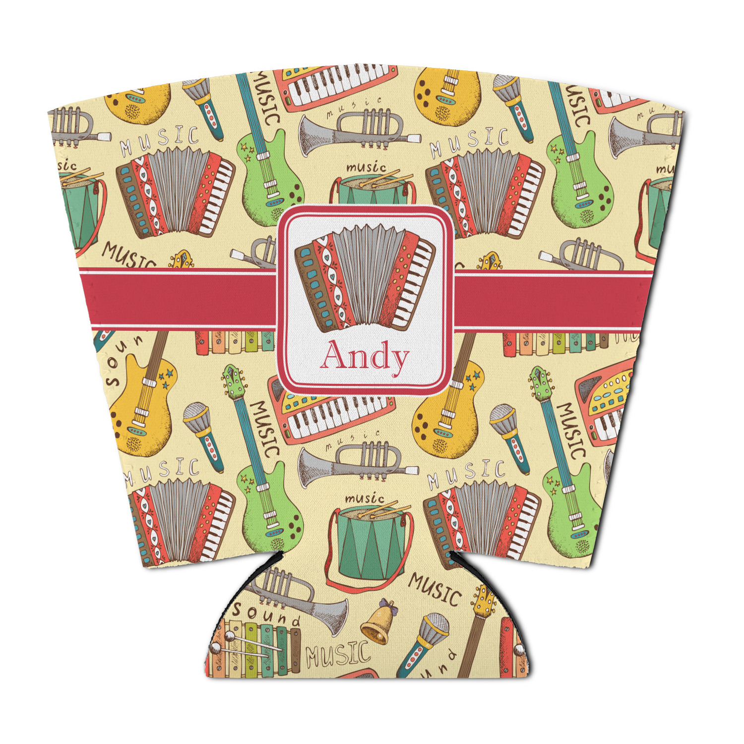 We have selected a classic red ribbon along with a square label that features the accordion along with a name for the personalization. You have a choice of instruments to feature on the label - your choices are: vintage guitar, xylophone, accordion, trumpet, keyboard, drum, microphone or bell and of course you can personalize it with your choice of text.