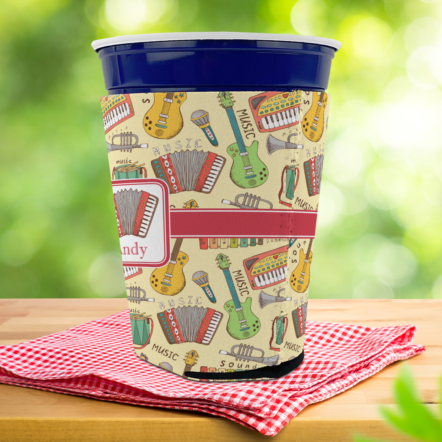 Made from neoprene with a polyester outer fabric and sewn seams, these premium quality party cup sleeves are very durable and will hold up to heavy use. They are available in 2 styles - with a bottom or just a sleeve to go around the outside of the tapered cup. The sleeve covers are about 4" tall and cover about 90% of the classic 16 oz. Solo cup.