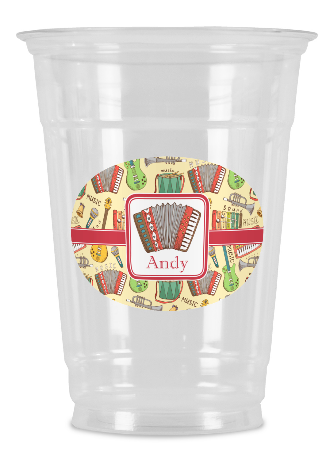 We have selected a classic red ribbon along with a square label that features the accordion along with a name for the personalization. You have a choice of instruments to feature on the label - your choices are: vintage guitar, xylophone, accordion, trumpet, keyboard, drum, microphone or bell and of course you can personalize it with your choice of text.