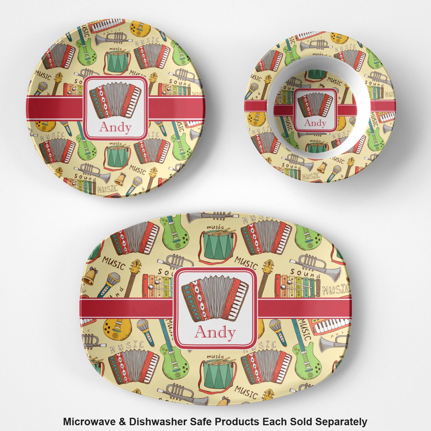 We have selected a classic red ribbon along with a square label that features the accordion along with a name for the personalization. You have a choice of instruments to feature on the label - your choices are: vintage guitar, xylophone, accordion, trumpet, keyboard, drum, microphone or bell and of course you can personalize it with your choice of text.