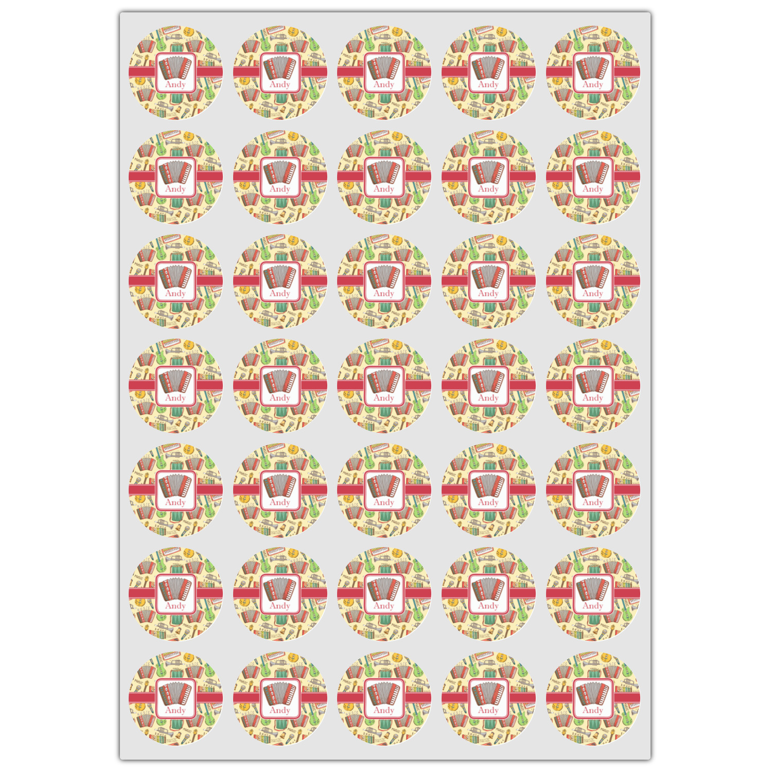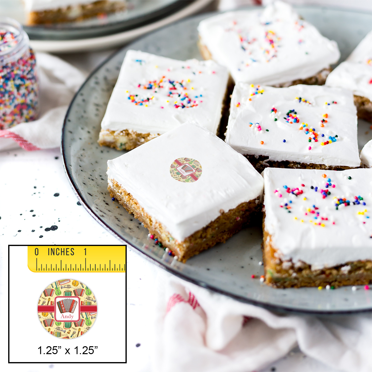 We have selected a classic red ribbon along with a square label that features the accordion along with a name for the personalization. You have a choice of instruments to feature on the label - your choices are: vintage guitar, xylophone, accordion, trumpet, keyboard, drum, microphone or bell and of course you can personalize it with your choice of text.
